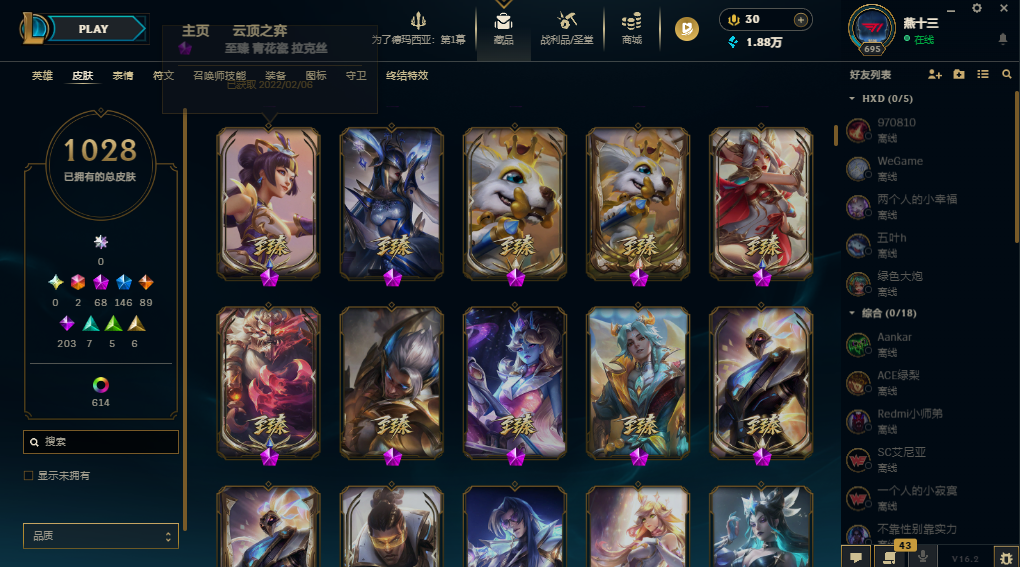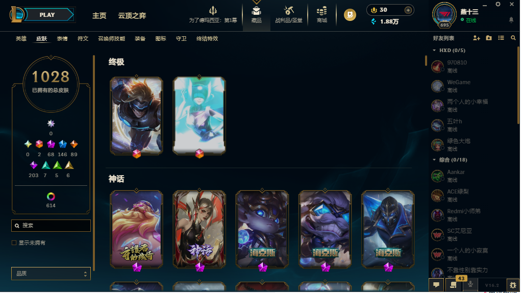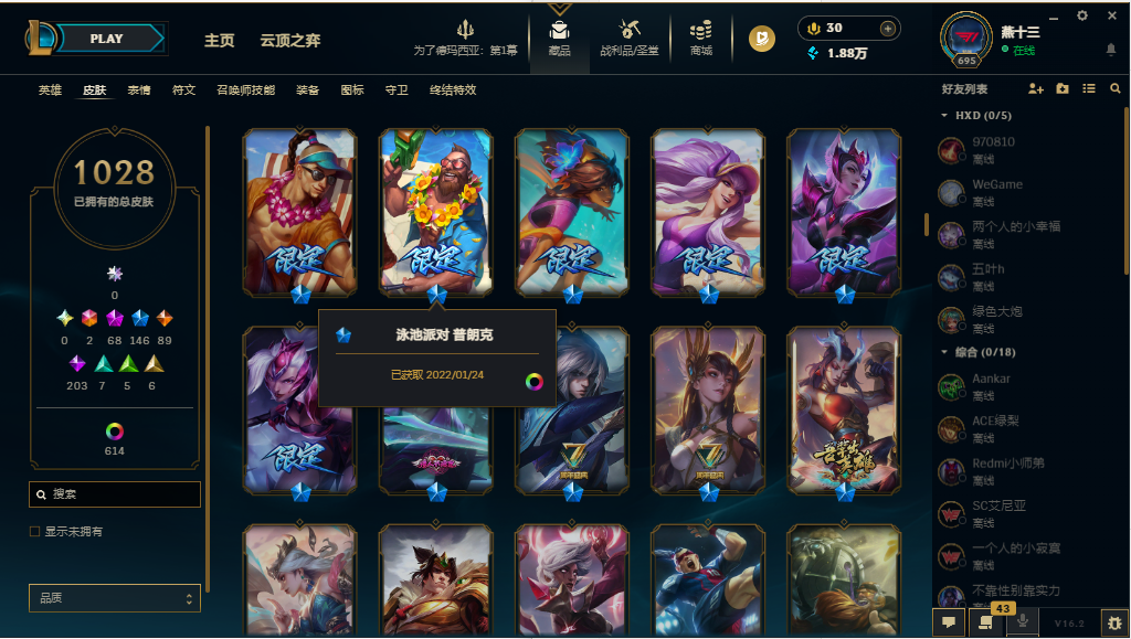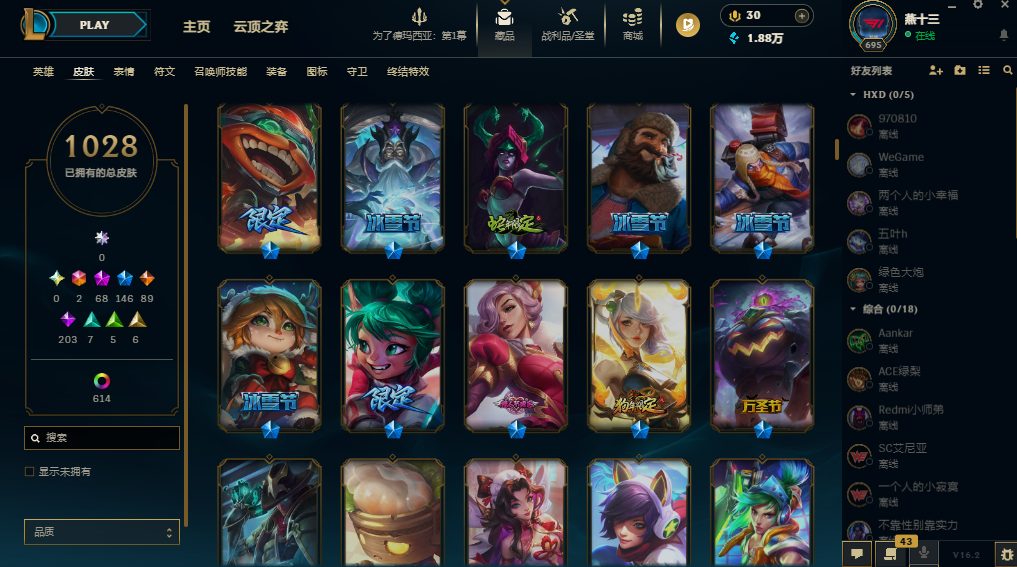 【1642皮/可排位】1028原皮/614炫彩/41臻彩/全英雄