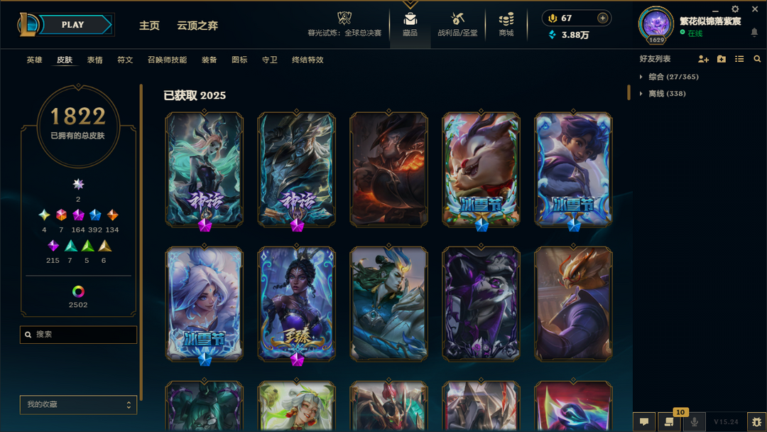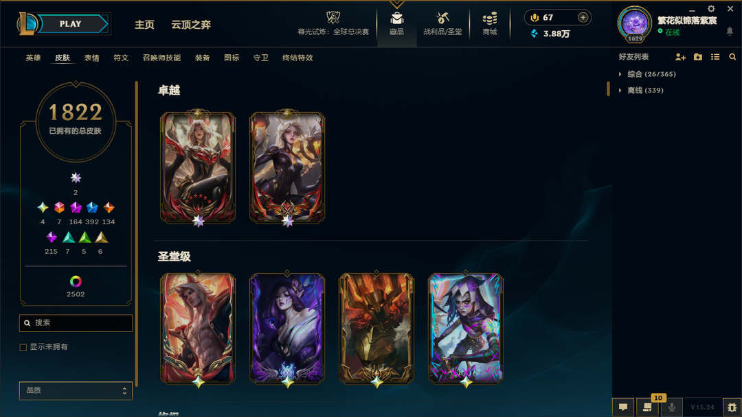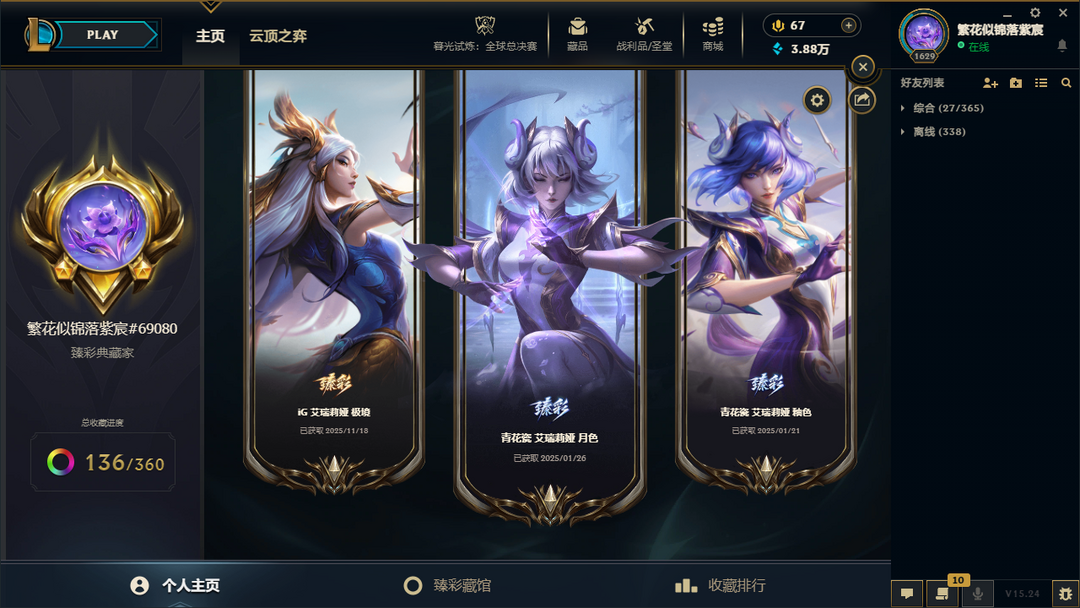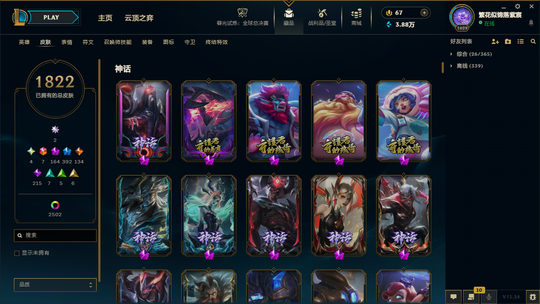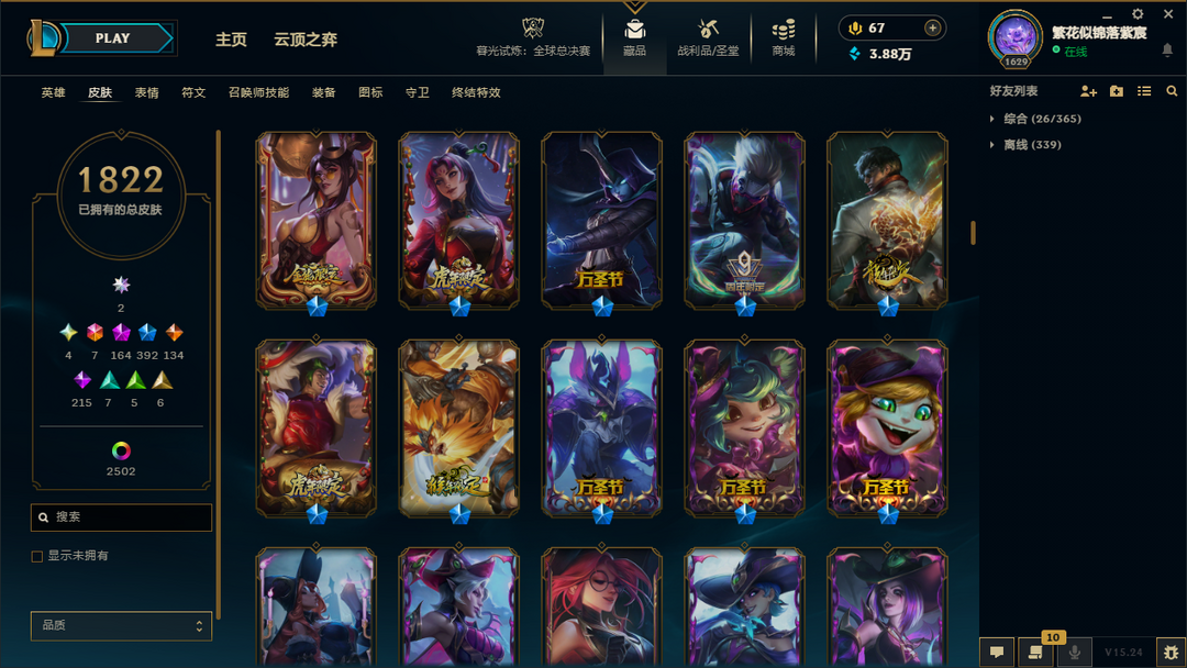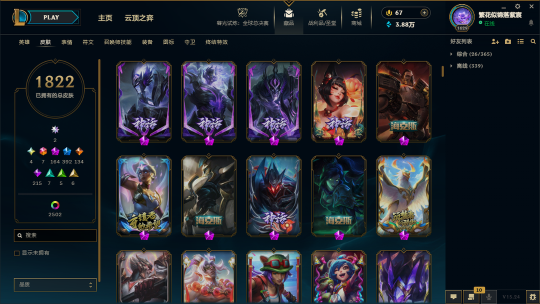 新增沉溺暗影卢娜!原皮1822,炫彩2502,全神话,全至臻,全边框!喜欢请收藏好评!!!