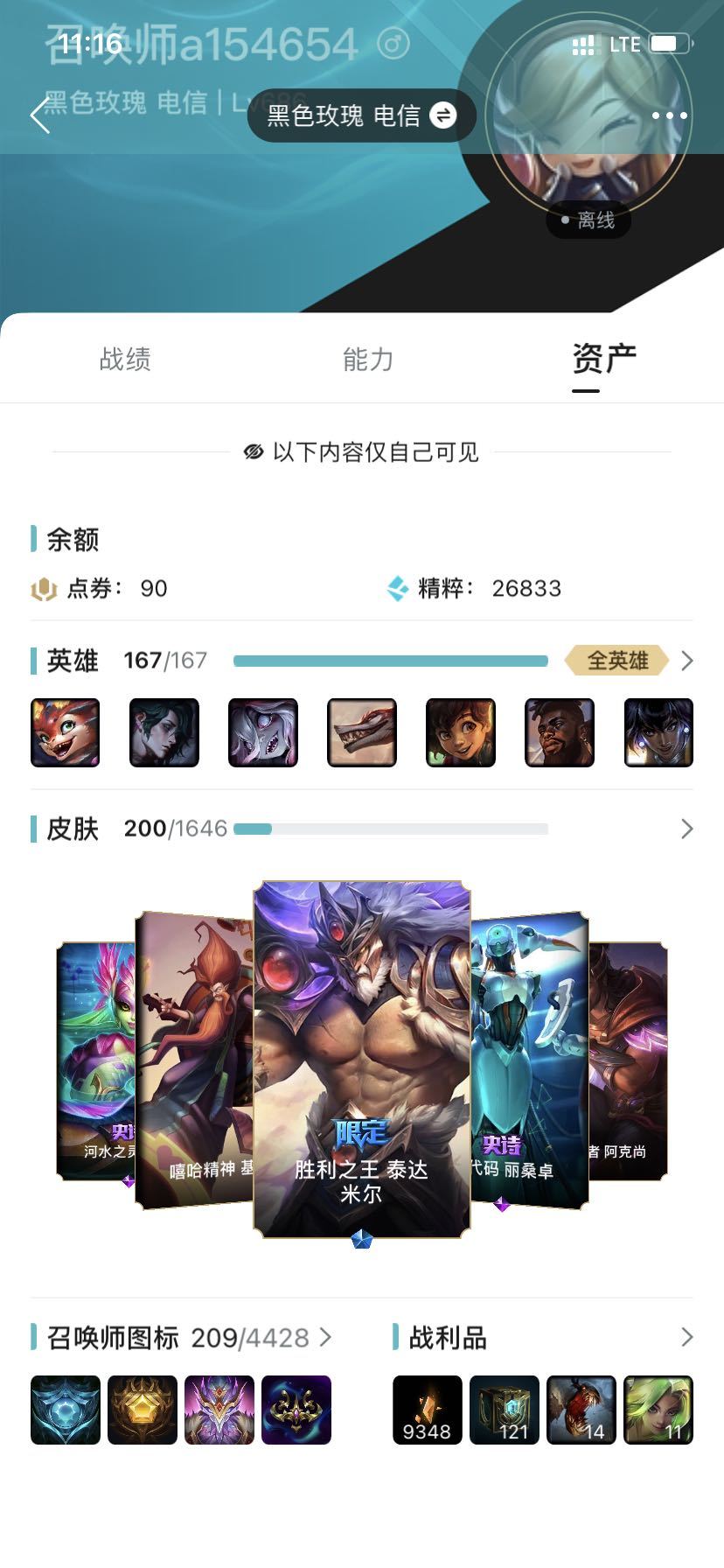 游戏区服:英雄联盟-黑色玫瑰-黑色玫瑰