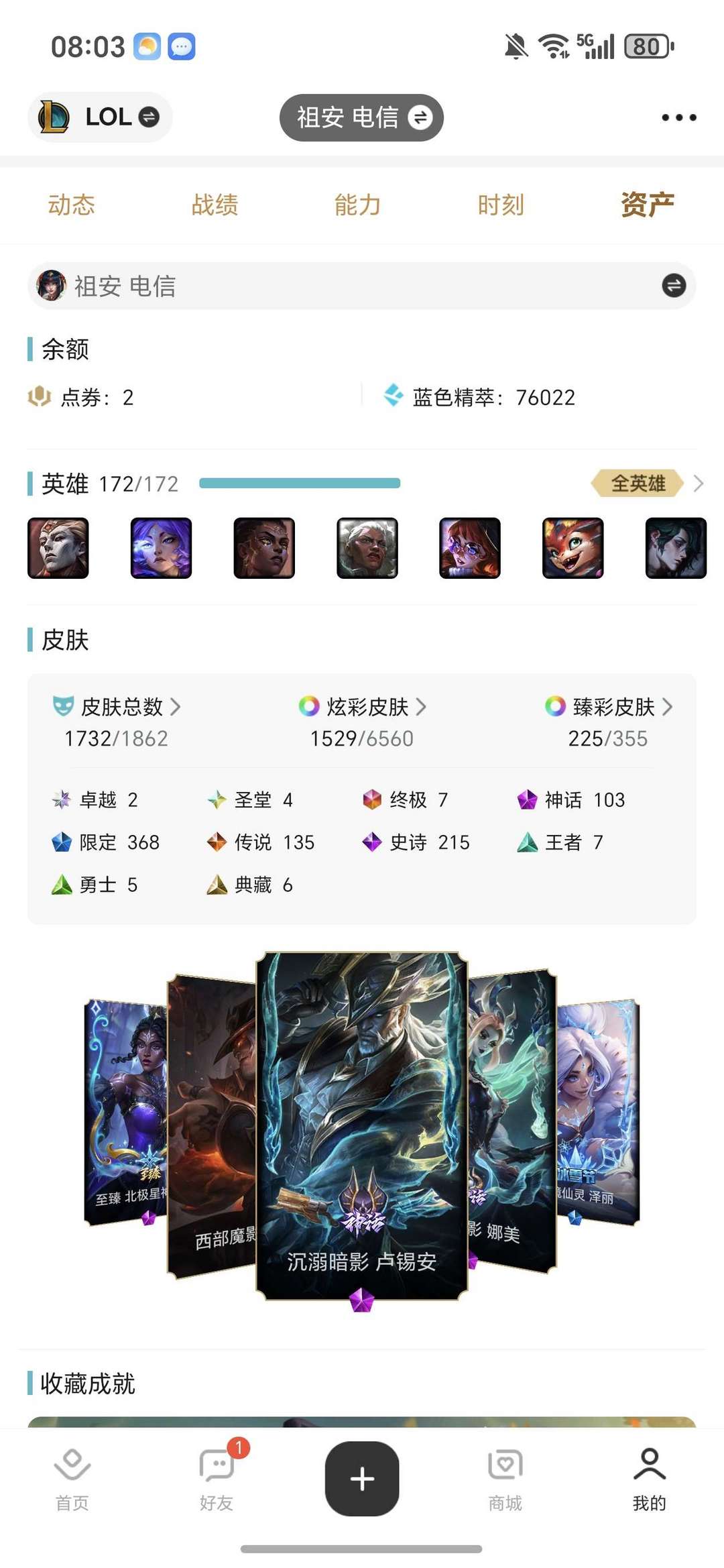 1732p/全套战队/满神话幻象/225臻彩/龙瞎冰原酒桶/签名版联盟不朽阿狸/签名版卡莎/满圣堂