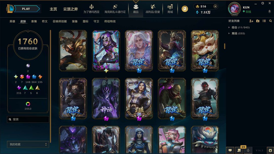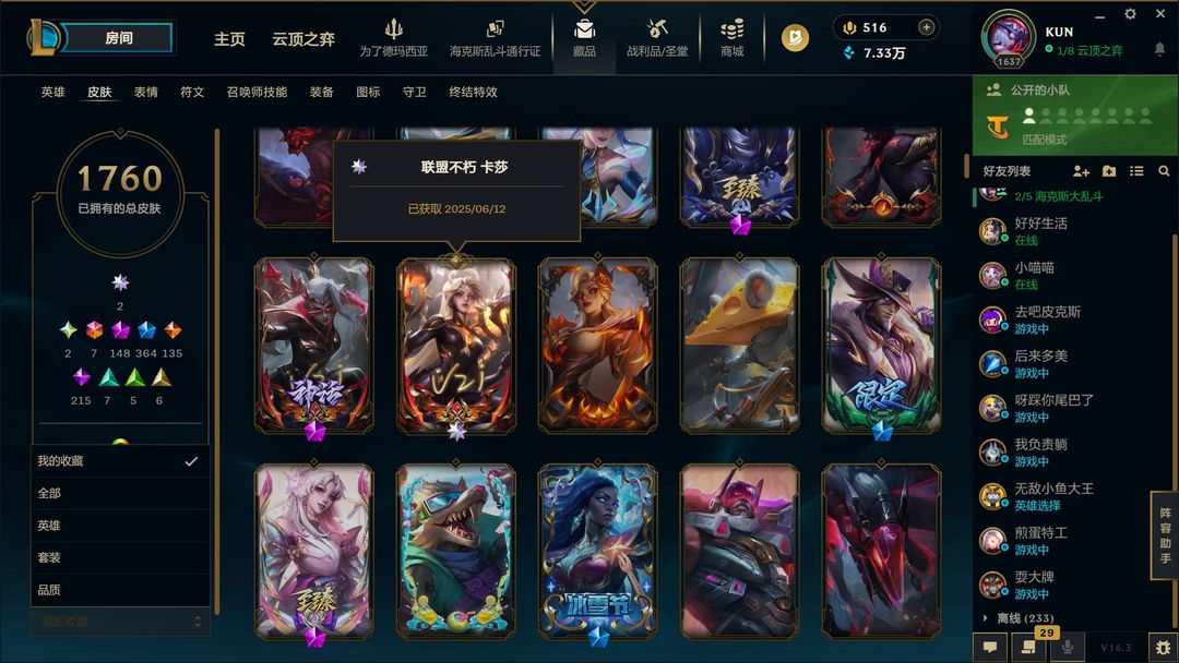 【1760原皮】王佛耶戈.uzi名人堂签名卡莎.云顶至臻阿狸格温.全年限全至臻.破碎者金克丝