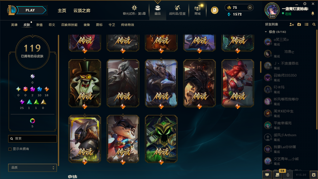 装备描述:神王诺手德玛黑夜亚索冠军劫马年瑞文欧米咖小队提莫等等等等