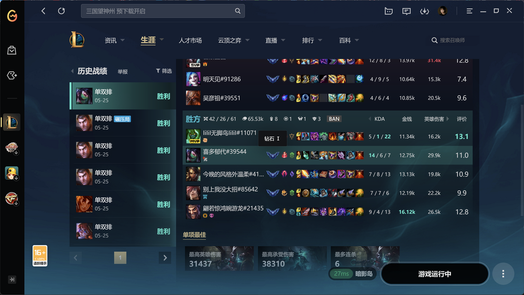 联盟二区❤暗影岛❤单双钻石隐藏分❤中路专精❤带妹号❤可使用精粹❤