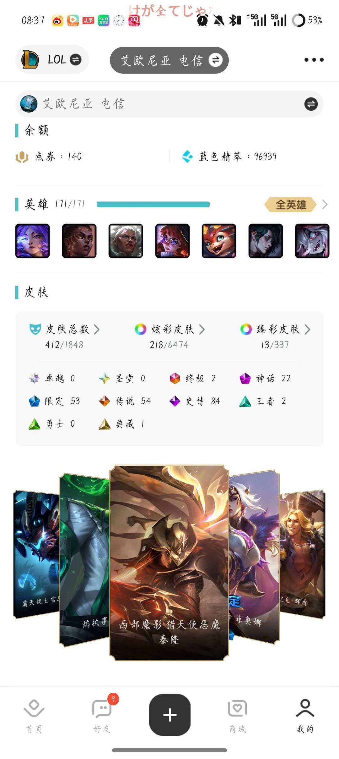 装备描述:佛系号主400+皮肤排位娱乐云顶之弈可打喜欢本账号请点 ☆收藏☆ 方便下次租用,谢谢光临惠顾!