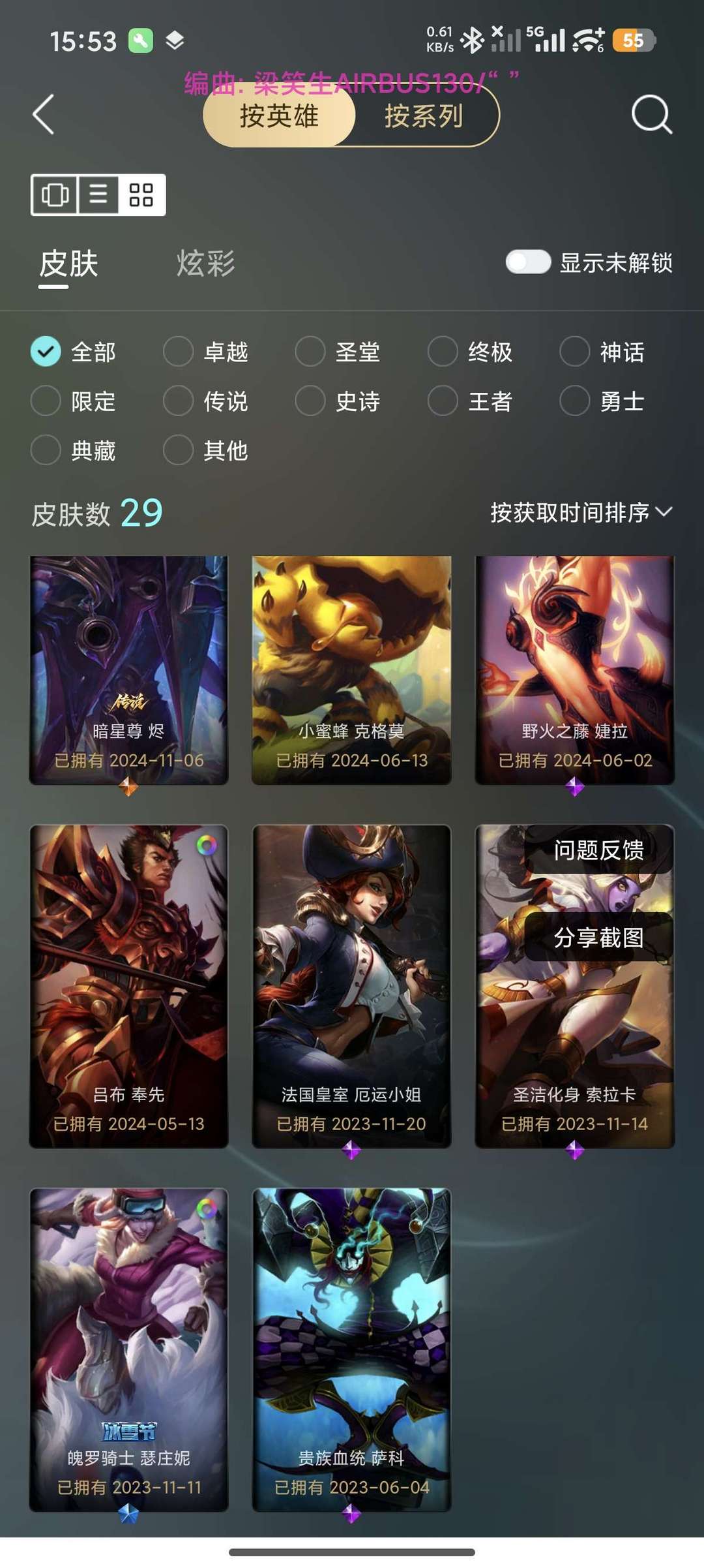 装备描述:角色皮肤如下别挂机开挂模式随便打 基本角色都有 最近有人马车骑 神龙狗熊