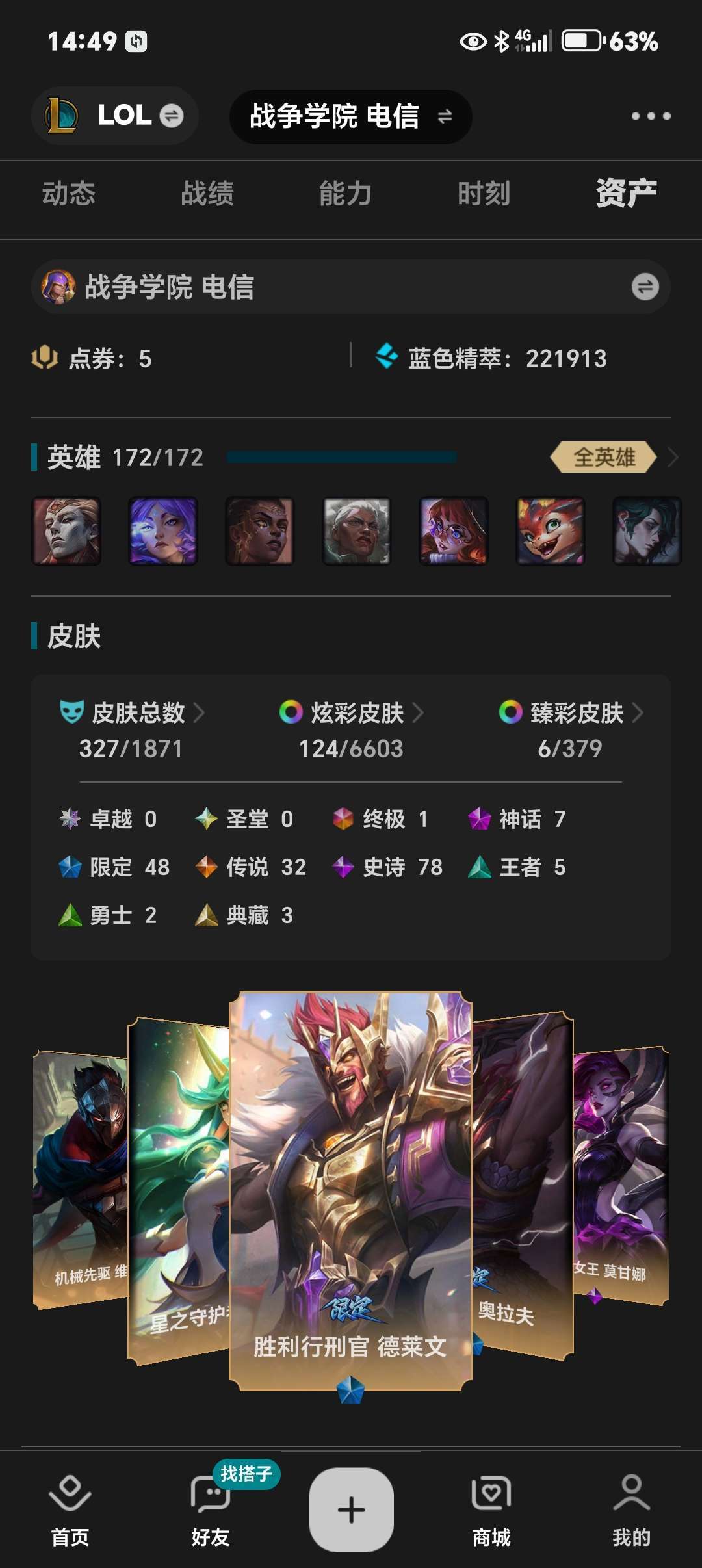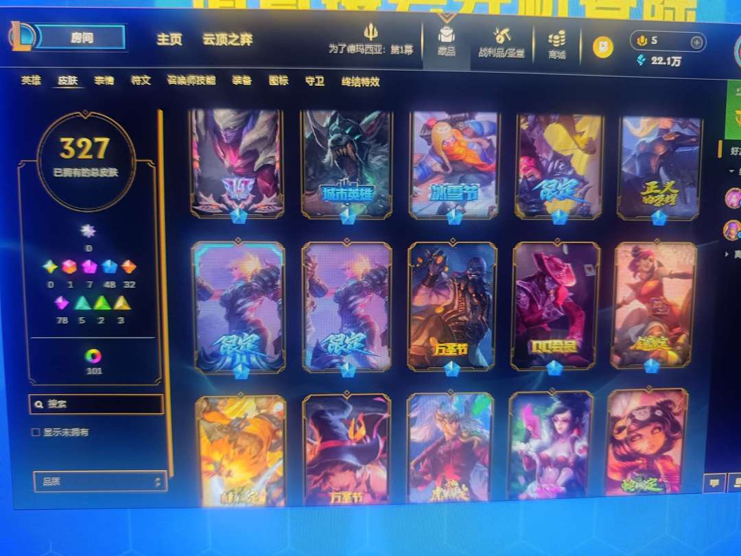 猴年限定皮肤❤️马年限定皮肤❤️蛇年限定皮肤❤️327种限定皮肤❤️满英雄614级