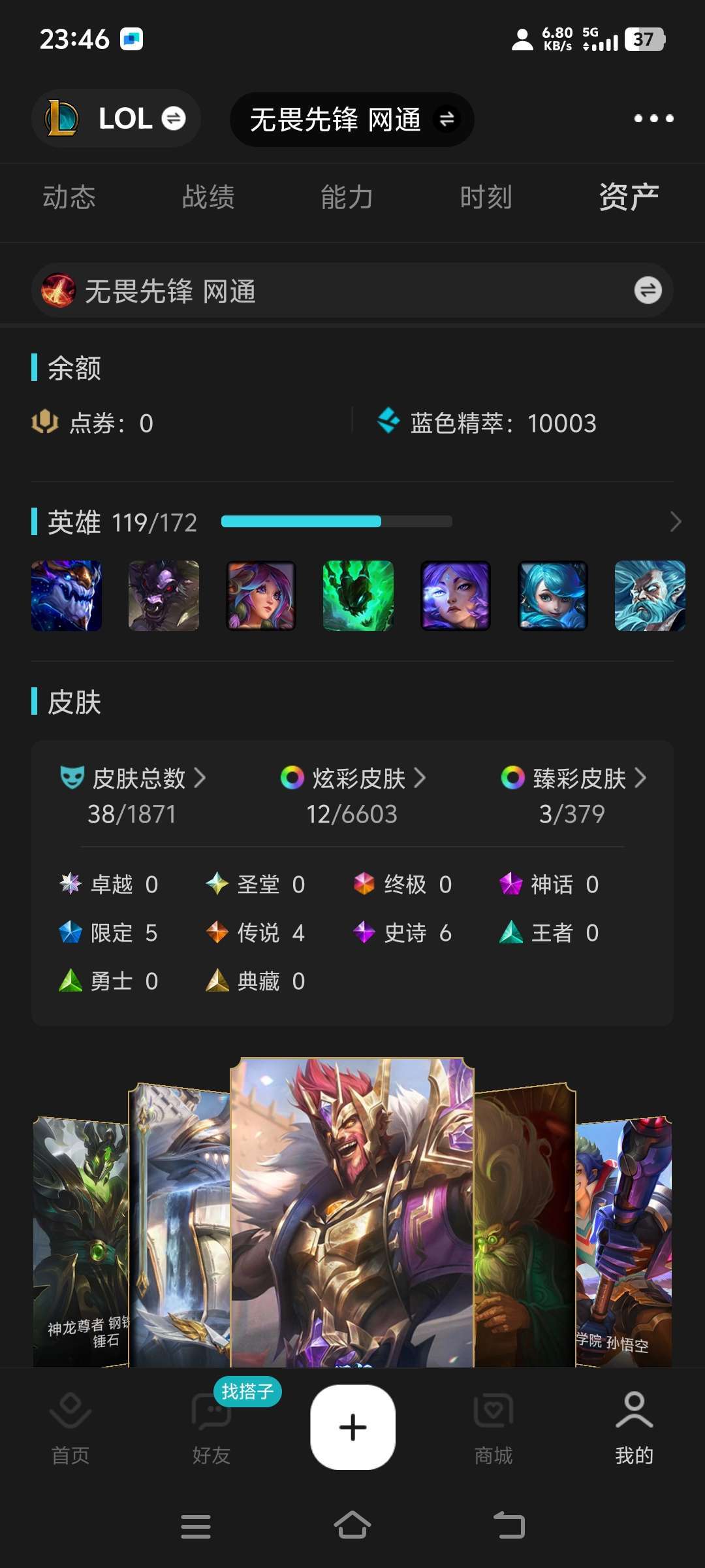游戏区服:英雄联盟-联盟五区-无畏先锋