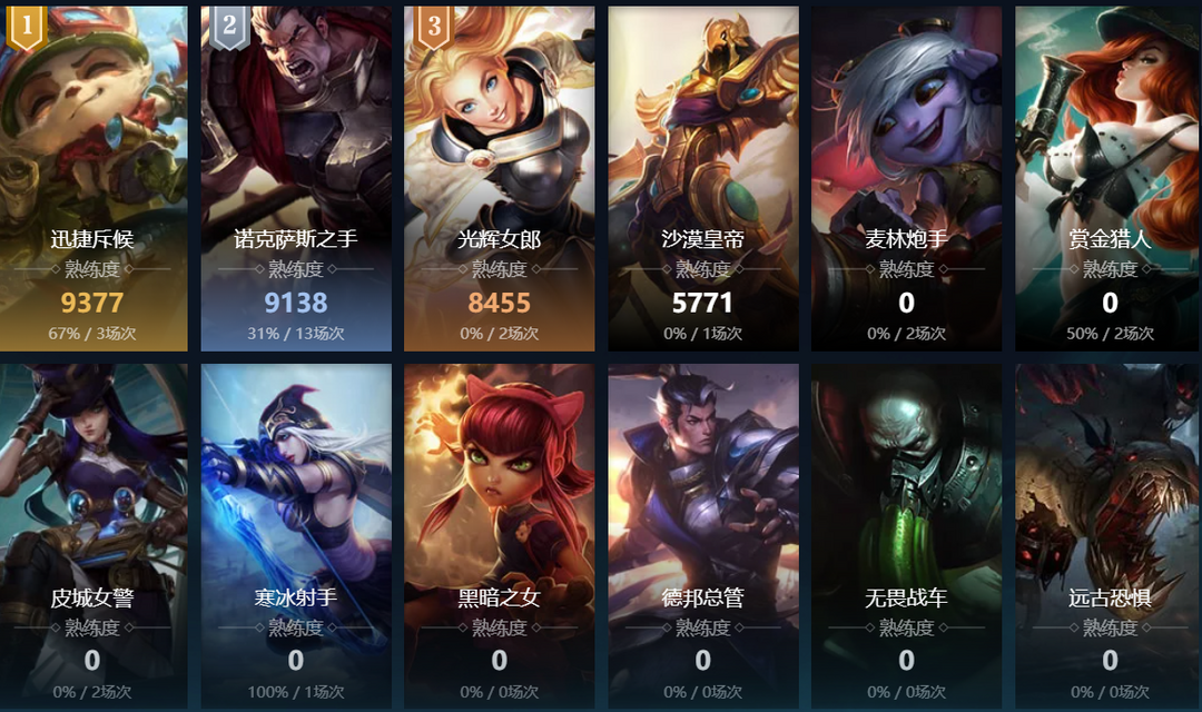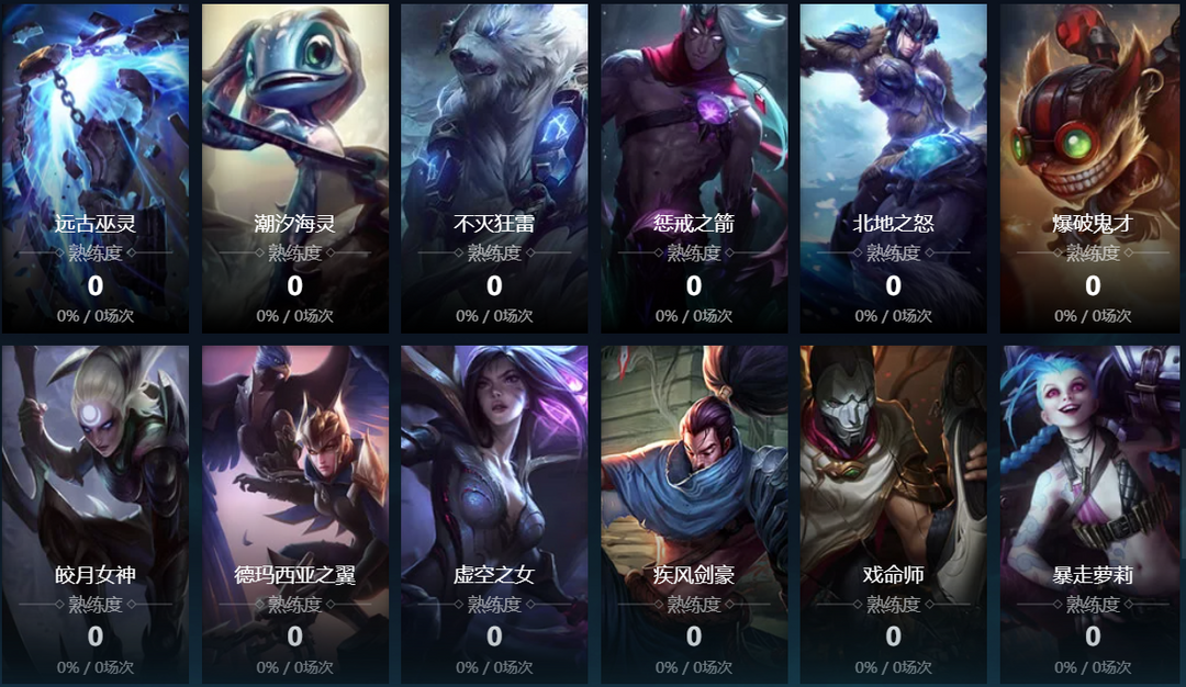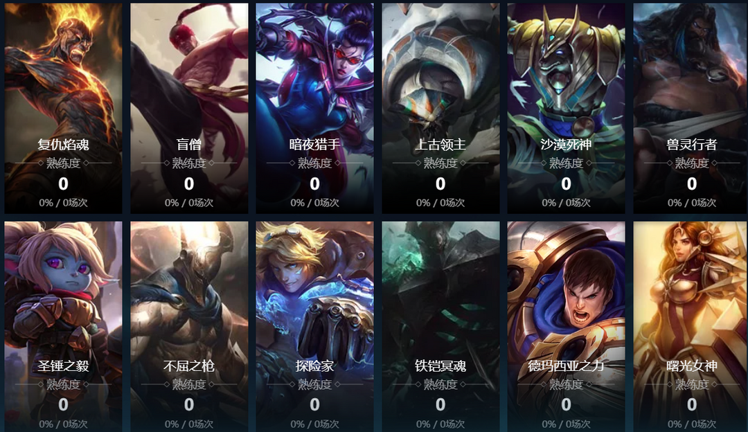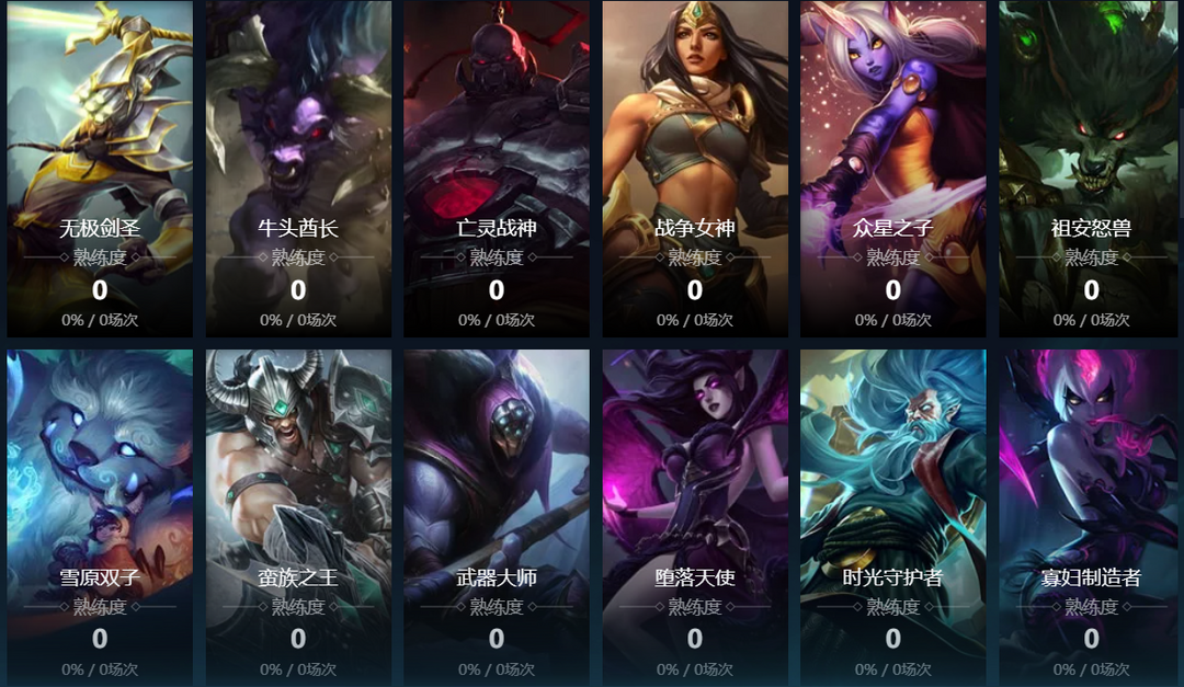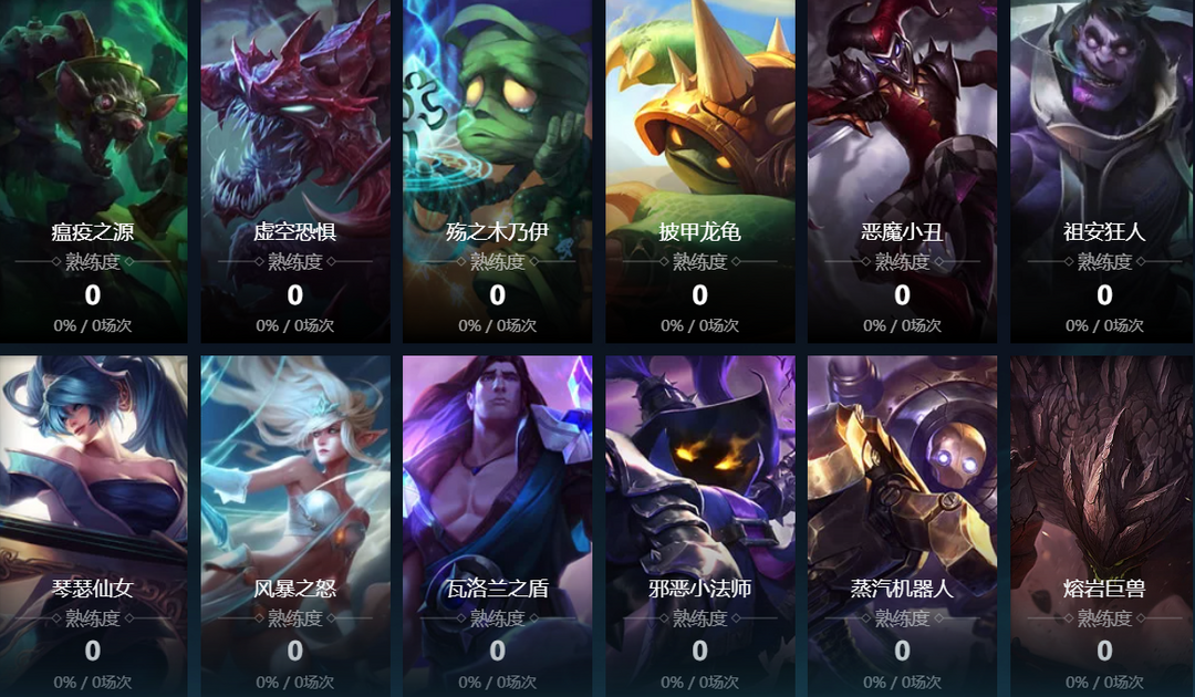 熔岩巨兽;德玛西亚之力;诺克萨斯之手;暮光星灵;卡牌大师;远古恐惧;无极剑圣;战争女神;迅捷斥候;赏