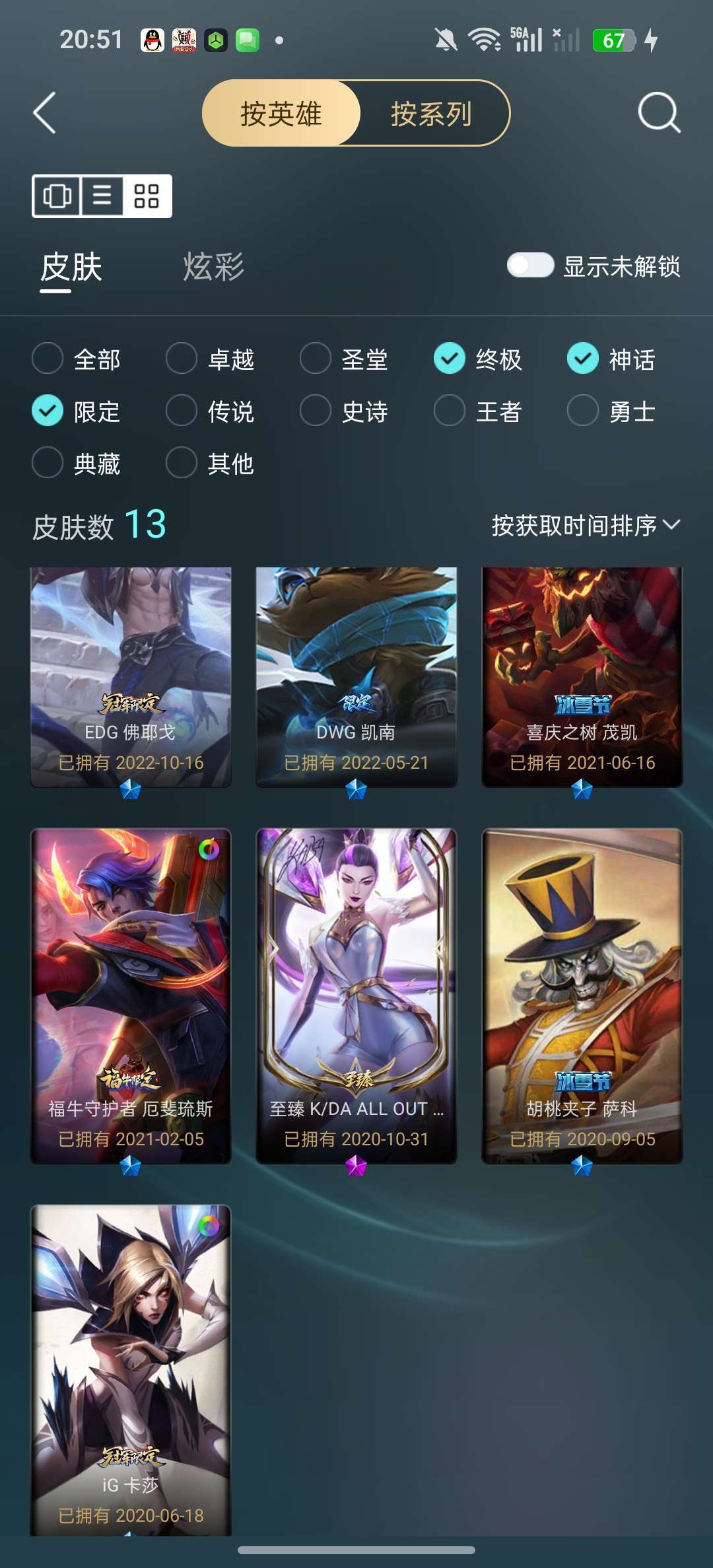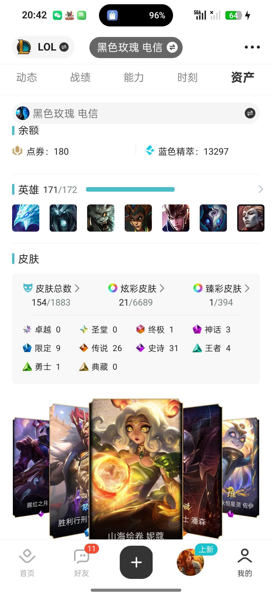 【黑色玫瑰】154皮肤全英雄顶级带妹号 多传说多史诗+乌迪尔终极皮肤