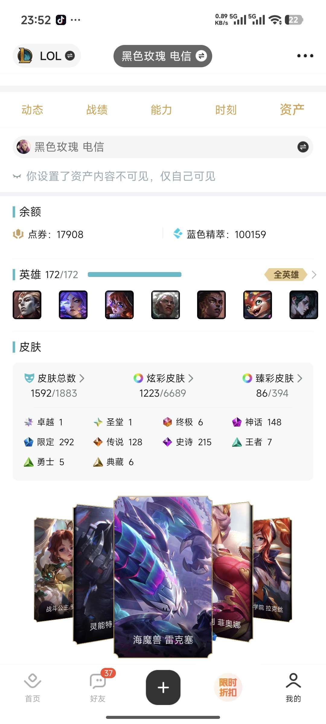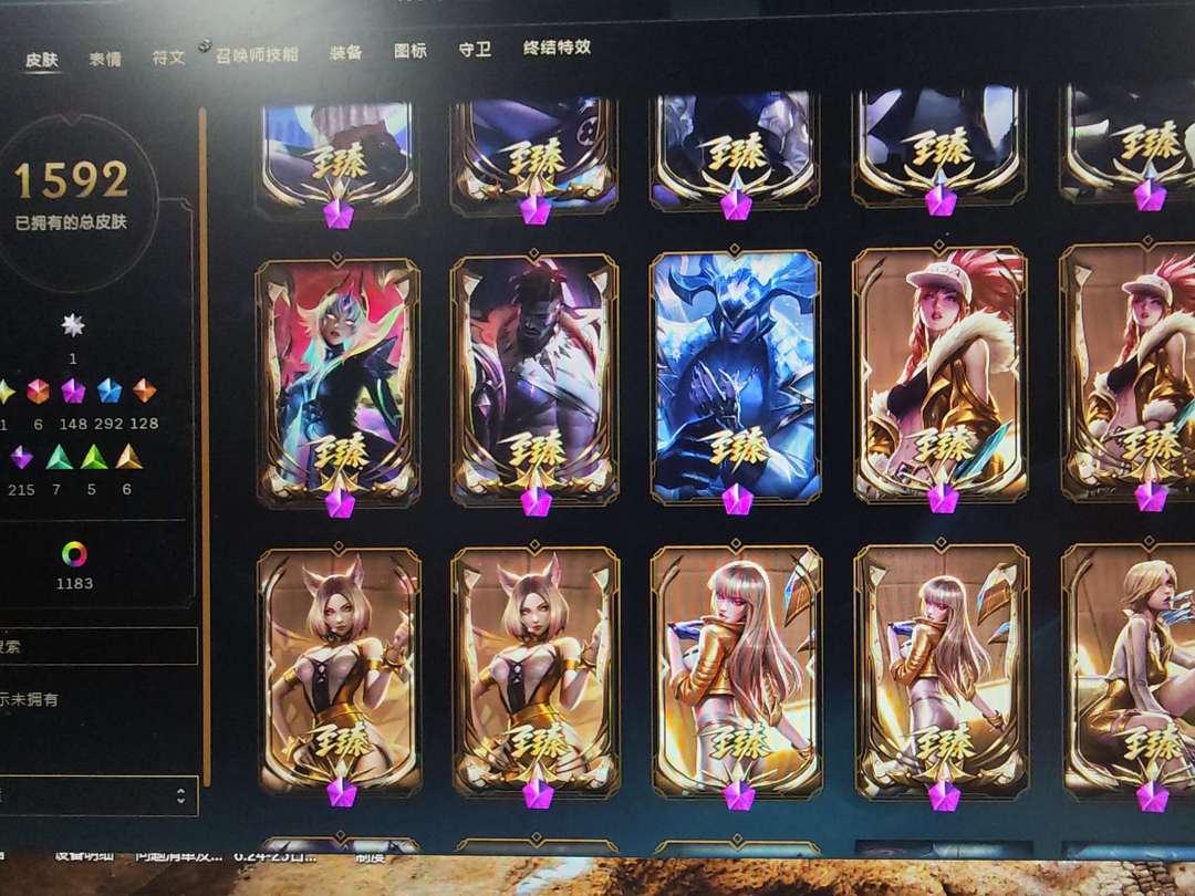 1600皮肤,1圣堂,148神话,292限定,龙瞎啥的都有