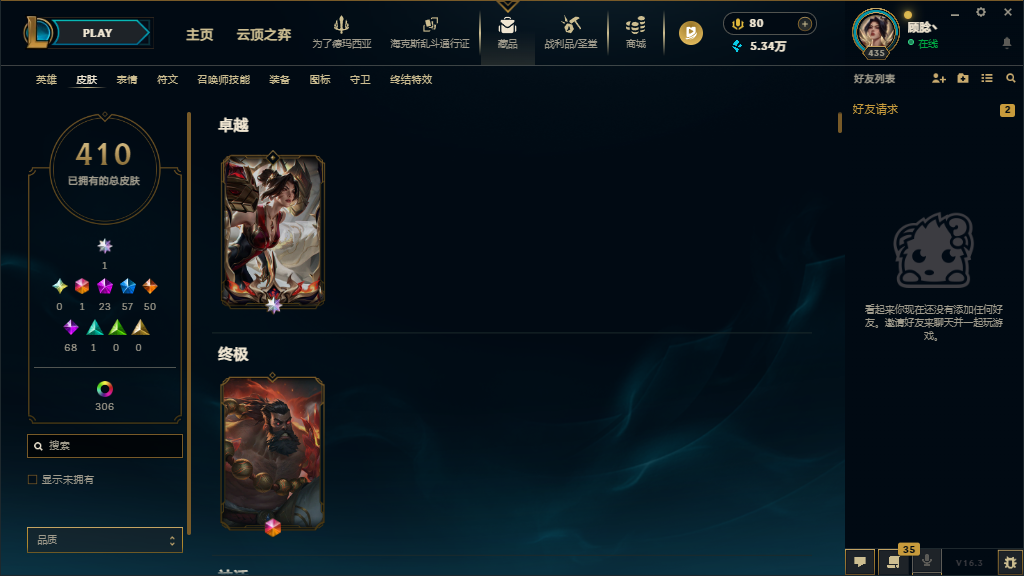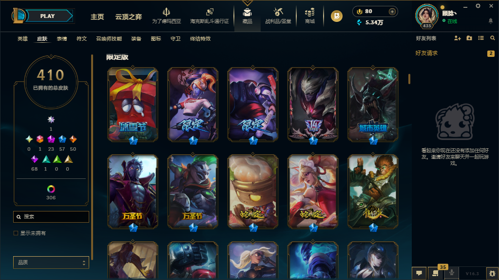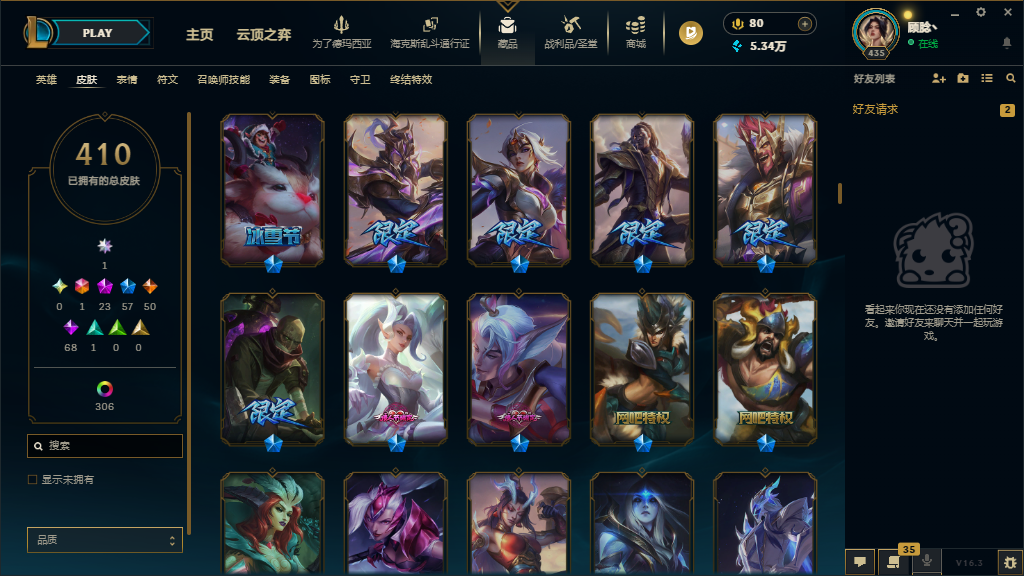 装备描述:基本一个英雄一个皮肤,ad皮肤偏多,爱玩ad的可以来。。。