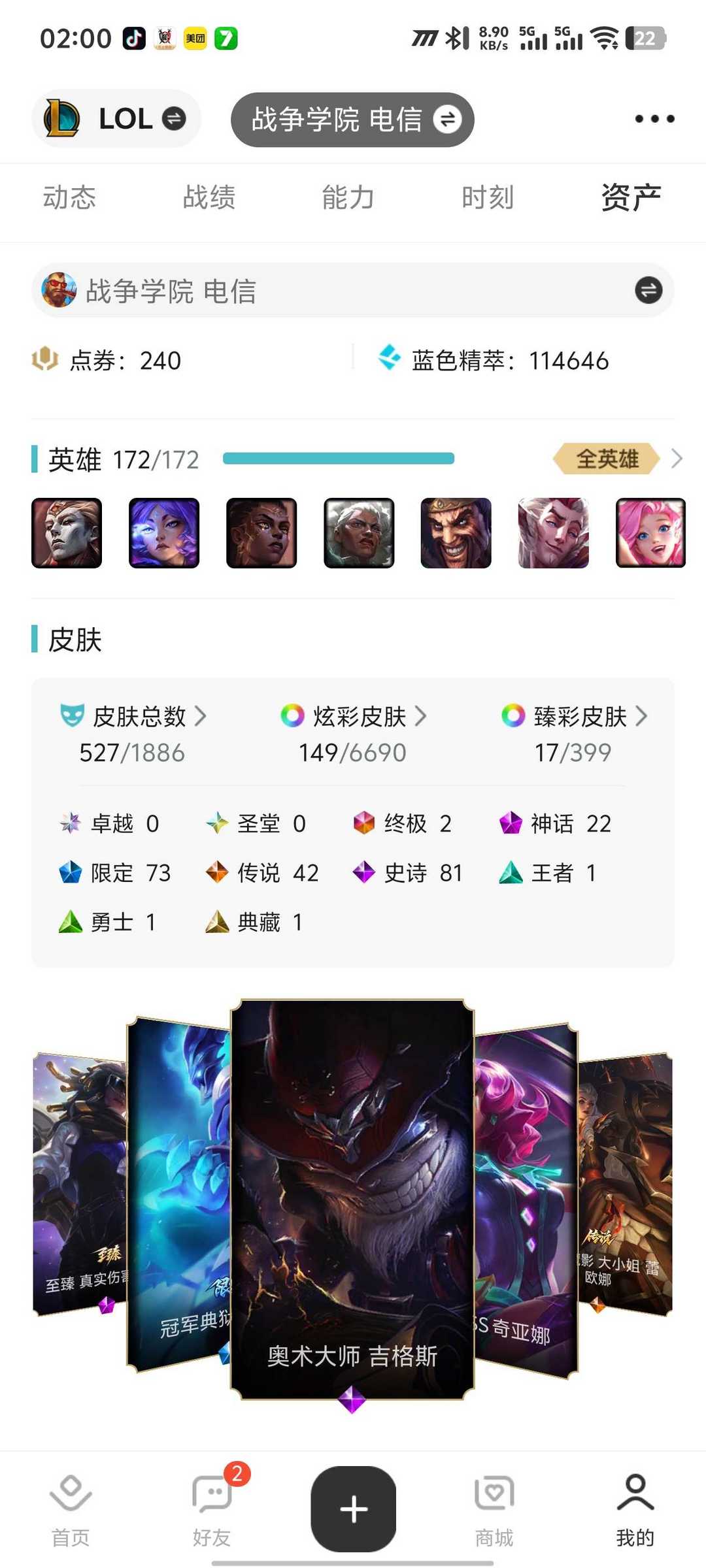 (联盟二区可排位)原皮527★炫彩127★臻彩16★经典皮肤号★快速上号