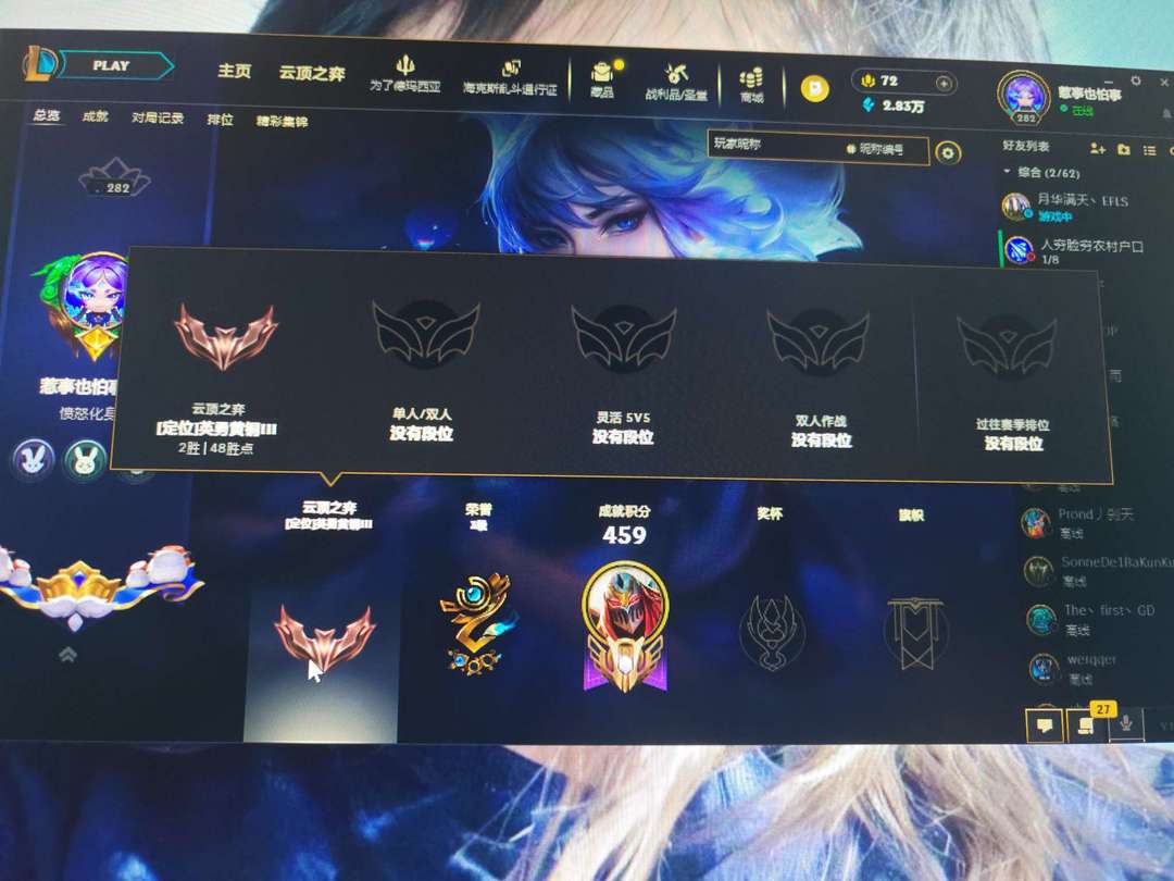 段位:282级 当前赛季无
