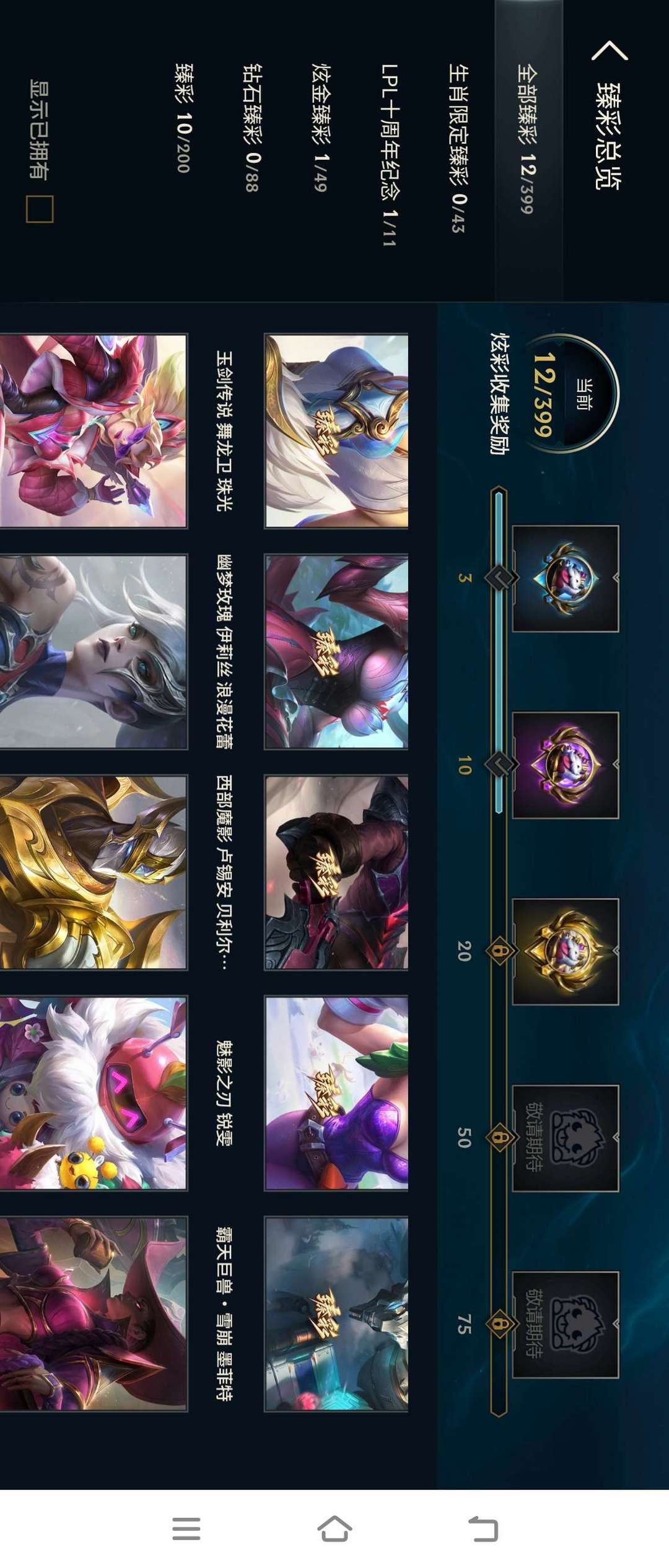 装备描述:瑞文石头人皇子都有臻彩基本上出场率较高的英雄百分之八十都有皮肤