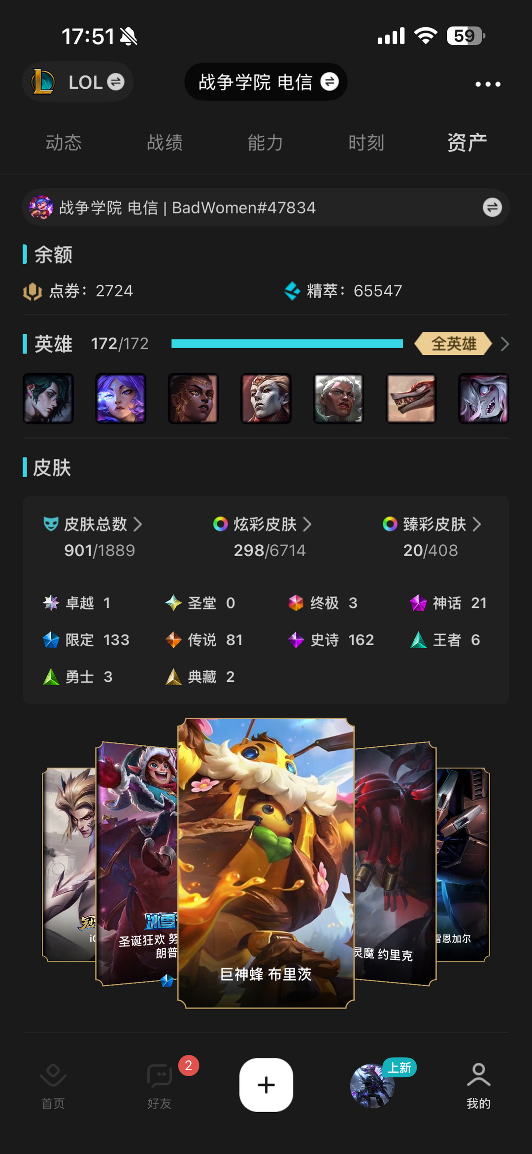 901皮肤20+神话20+臻彩+名人堂卡莎