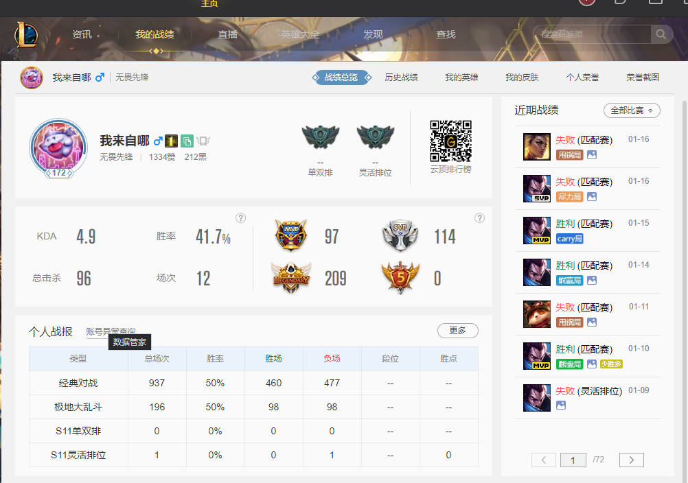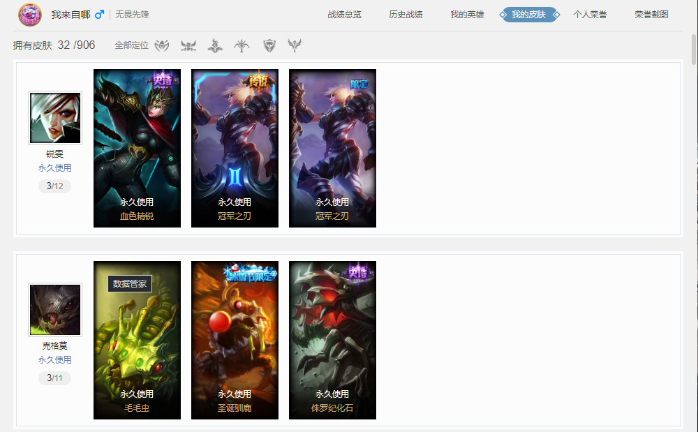 游戏区服:英雄联盟-联盟五区-无畏先锋