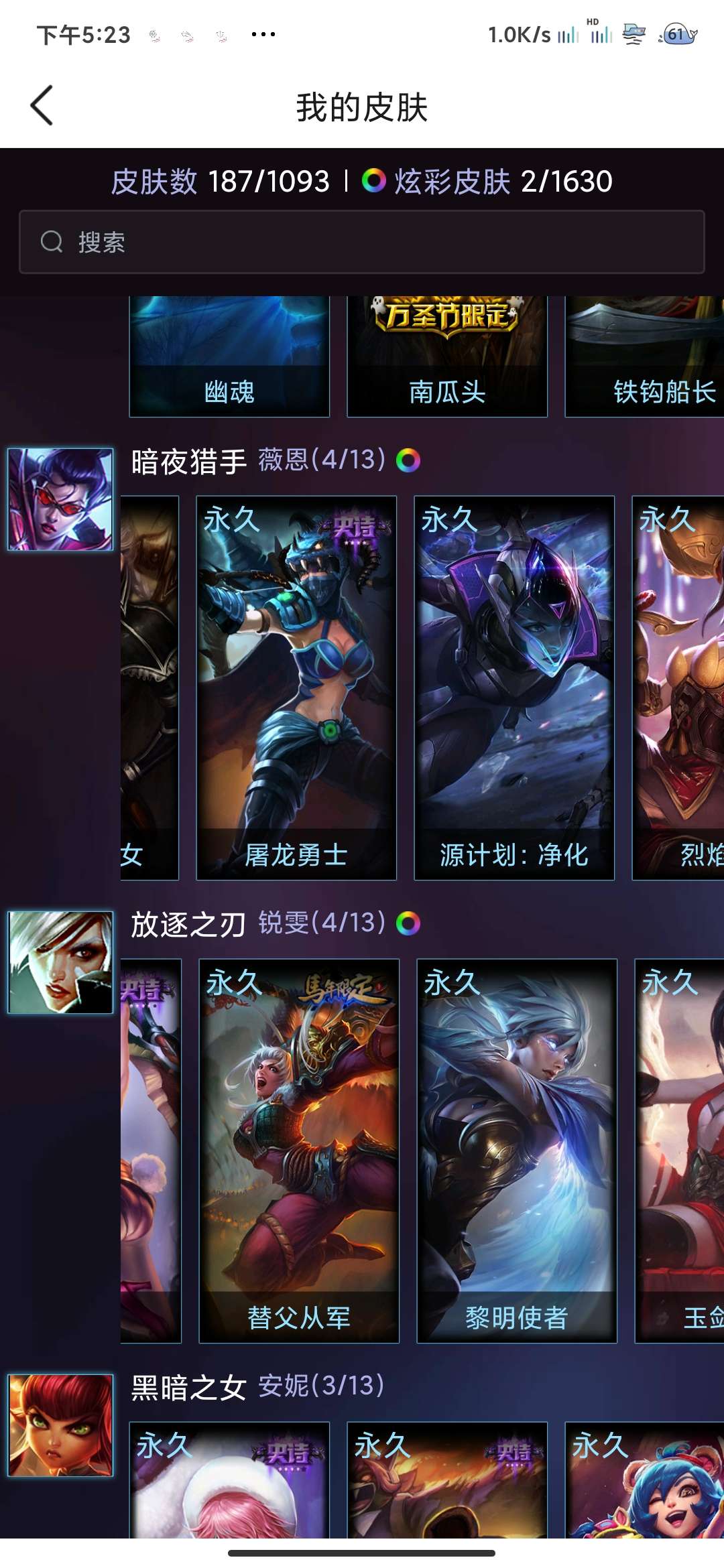 装备描述:有七周年刀妹,羊年金克斯,vn烈焰美人,瑞文玉剑传说花木兰黎明使者