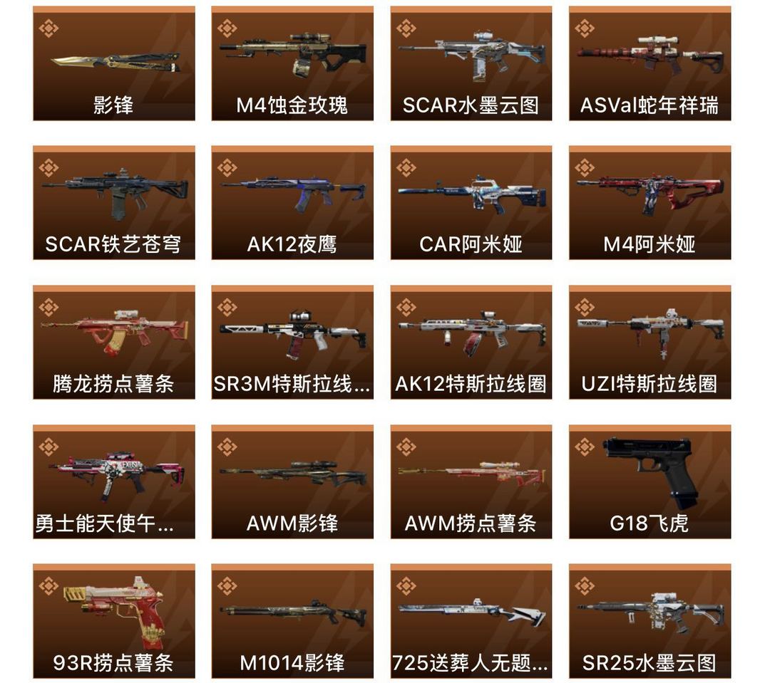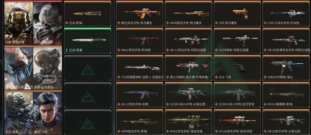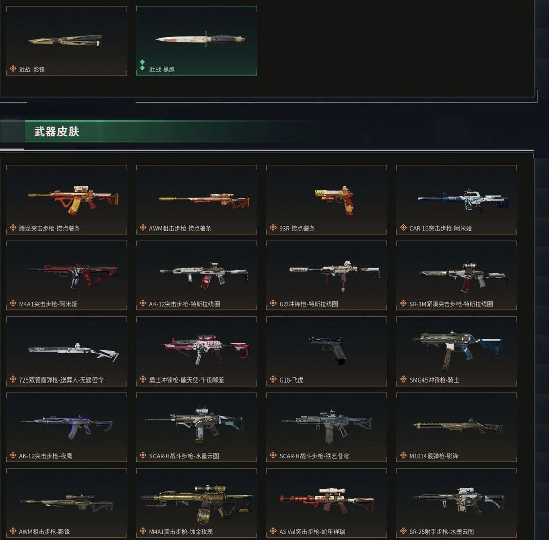 皮肤号 蚀金玫瑰-影锋蝴蝶刀-水墨云图-吴彦祖-夜鹰