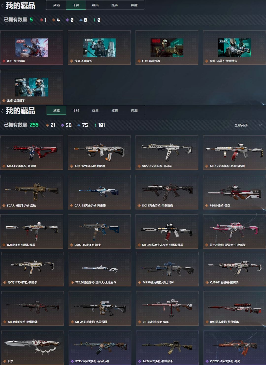 装备描述:信条刀 麦小雯红皮 骇爪 维什戴尔 26金皮 赛季六格 安全箱 红狼-电锯惊魂