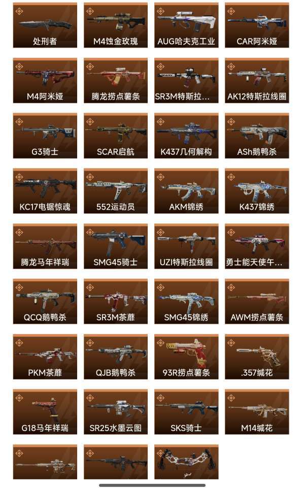 皮肤号 蚀金玫瑰,红狼电锯惊魂,金牌射手,处刑者,34传说枪皮