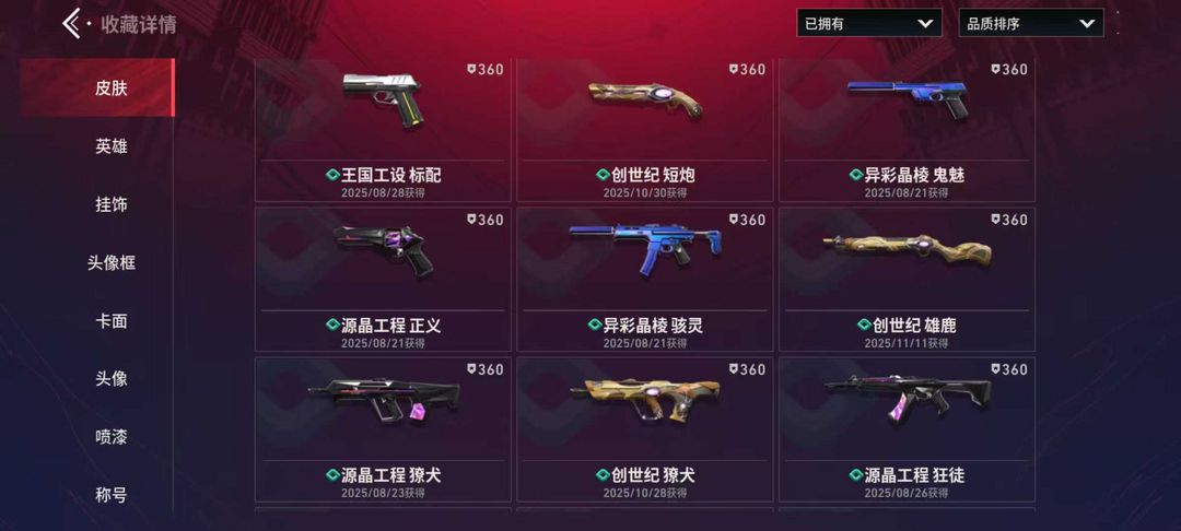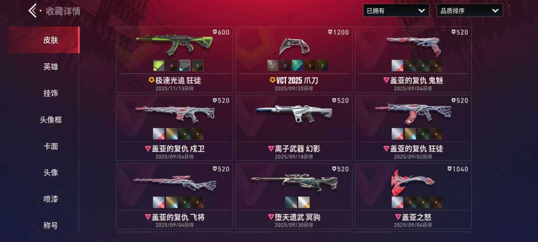 23级收藏家 盖亚的复仇全套 VCT爪刀 极速光追 狂徒 离子武器 幻影 堕天遗武 冥驹 22英雄