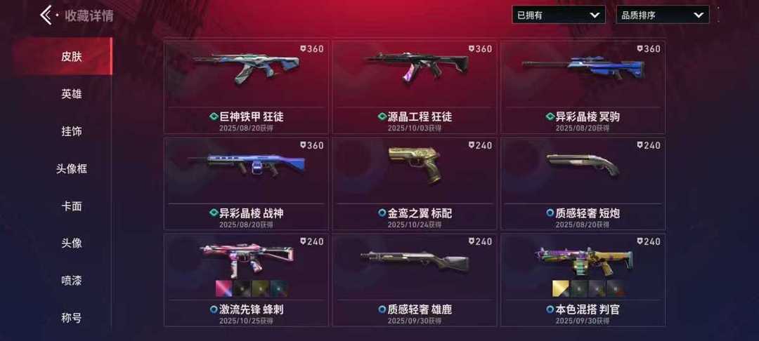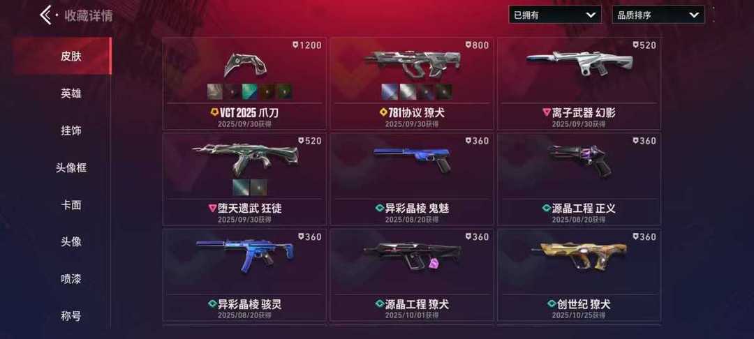 20级收藏家 VcT 爪刀 781协议 獠犬 离子武器 幻影 堕天遗武 狂徒 都已满阶 15英雄