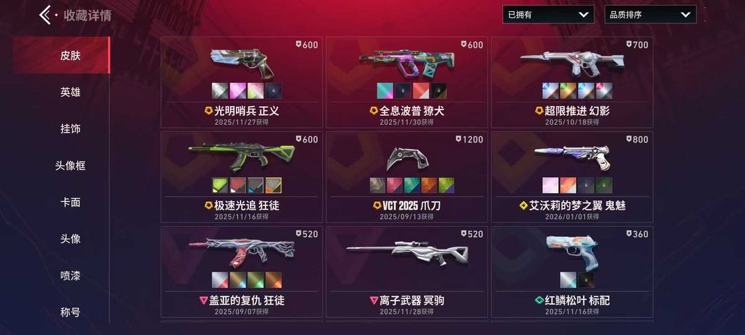 24级收藏家 VCT爪刀 光明哨兵正义 全息波普獠犬 超限推进 极速光追幻影 艾沃莉的梦之翼鬼魅