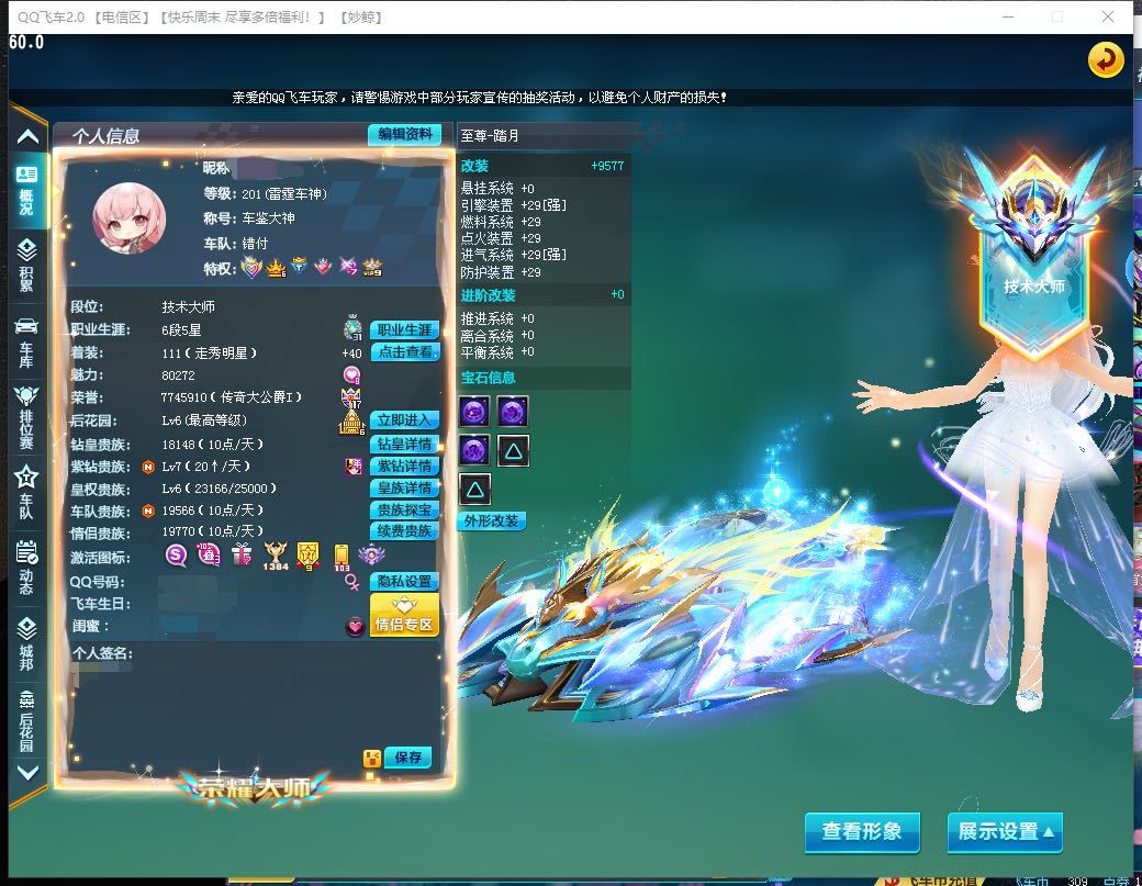 游戏区服:QQ飞车-电信-电信