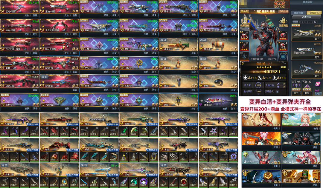装备描述:V9新氪账号(冒险1800万战力满同步巨阙贰无敌嘎嘎乱杀) 十把传说:瑶光终焉、星珀终焉、神谕终焉、无尽终焉、无限万化、M4A1无限、屠魔、AK天神、RPK天神、RPK主宰 彩金:天平贰、晶刹贰、巨阙贰、广陵贰、万象贰、魅影贰、两仪贰、飞梭贰、纵横贰、天枢贰、玉衡贰、塞壬壹、镇宇贰、锁宙贰、暗水晶贰… 变异血清、变异弹夹齐全 等等… 如有不足的地方可以评论,尽可能满足大家的需求!觉得还不错的话记得给个好评,点个收藏以便您下次租用! 如若平台登录不上以及其他问题请撤单或找客服 账号描述一切属实,请不要以账号描述与事实不符撤单,如有拉黑!谢谢配合 周末(周五-周日)或出武器时,价格可能会有浮动,还请各位见谅❤ 再次祝您玩的愉快❤恳请各位文明用号, 不要使用第三方软件❤