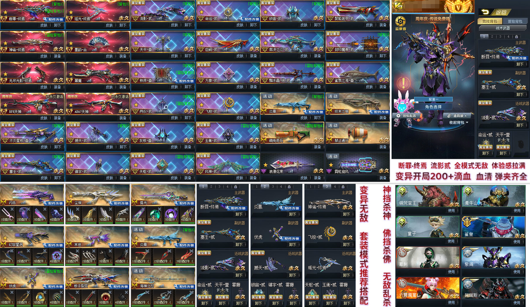 装备描述:2026年顶级新氪账号 传说:断罪终焉(2026最新传说)、瑶光终焉、神谕终焉、墨韵合、无尽终焉、屠魔、AK天神、RPK天神 彩金:流影贰(2026年新彩金刀战无敌)、命运贰、天平壹、巨阙贰、秩序壹、万象贰、两仪贰、飞梭贰、撼天贰、风神贰、天枢贰、玉衡贰、不灭星核壹、塞壬贰、裁决之炎贰、镇宇贰、锁宙贰、聚能装甲贰、魔典贰、暗水晶贰 变异体:青牛山大王、铜兕蛮王、飛鼠童子等等 英雄角色:鲲仑公主、鲨皇 变异血清、变异弹夹齐全 等等…… 如有不足的地方可以评论,尽可能满足大家的需求!觉得还不错的话记得给个好评,点个收藏以便您下次租用! 如若平台登录不上以及其他问题请撤单或找客服 账号描述一切属实,请不要以账号描述与事实不符撤单,如有拉黑!谢谢配合 周末(周五-周日)或出武器时,价格可能会有浮动,还请各位见谅 再次祝您玩的愉快恳请各位文明用号, 不要使用第三方软件