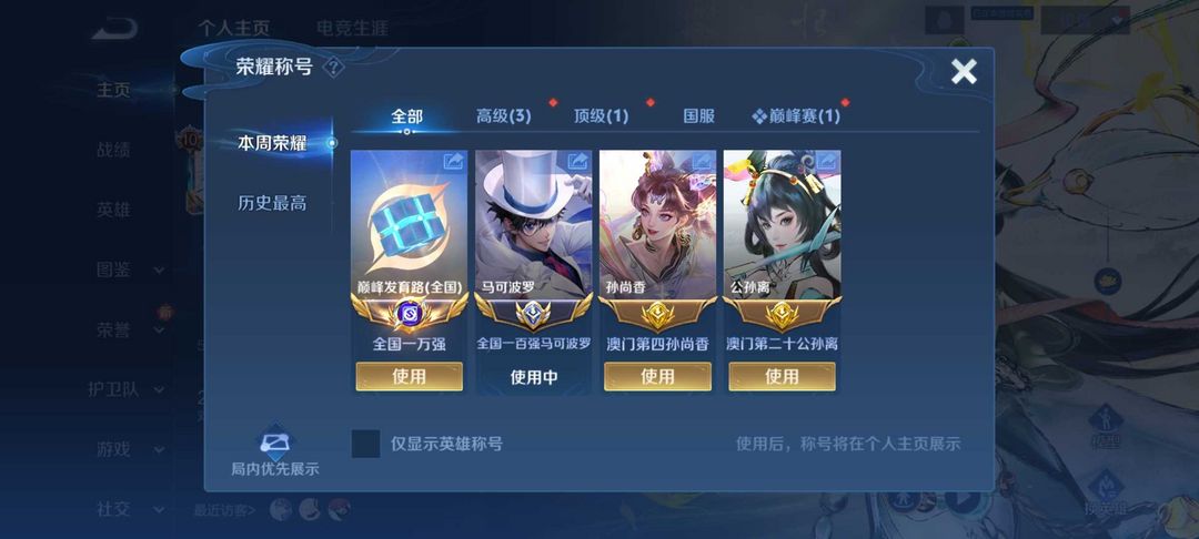 ⛔️本周在榜小国标马克波罗⭐️现巅峰万强2000名闪电框⚡️国服马克❤️禁巅峰⭐️怪盗基德满皮v10
