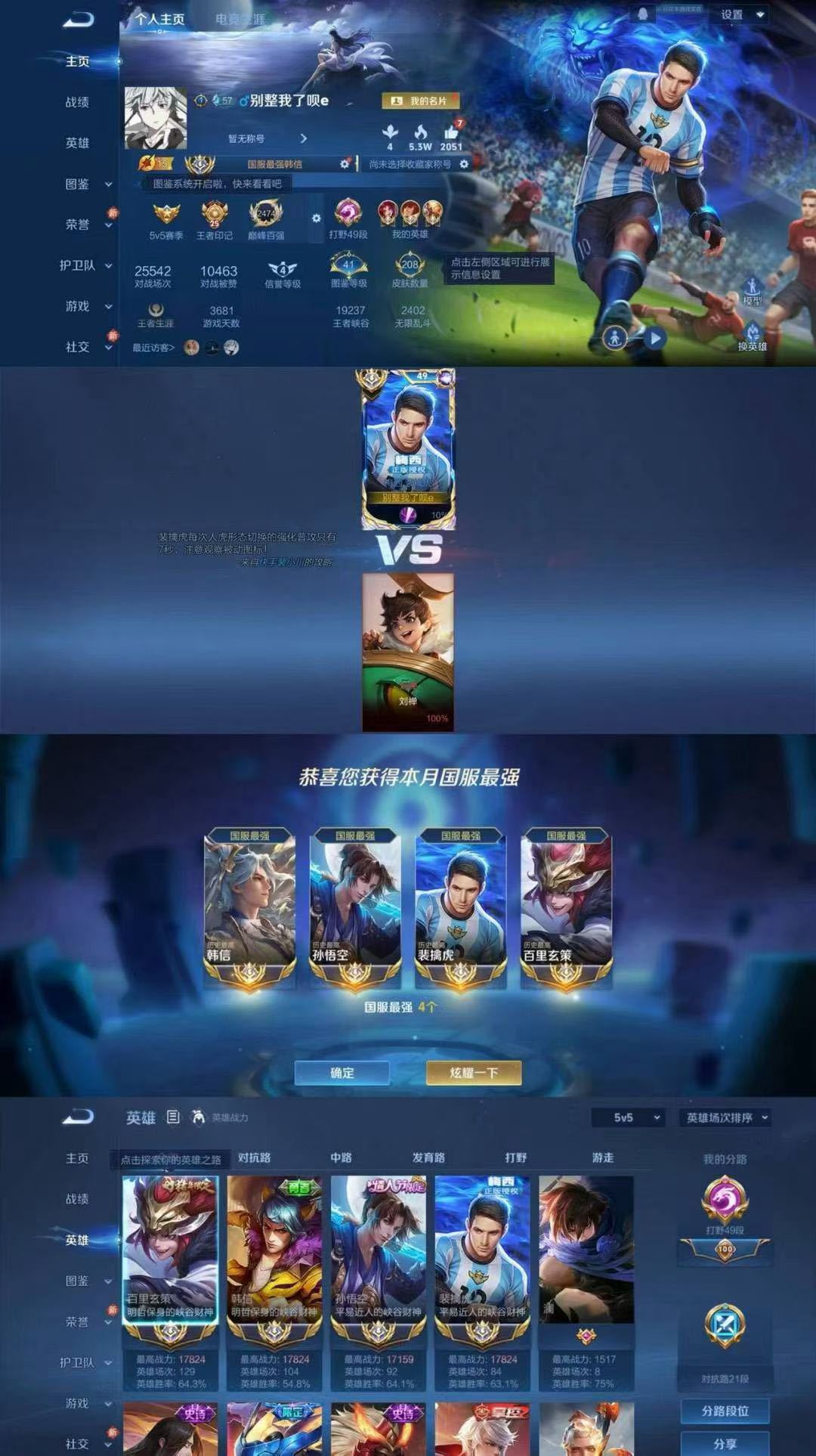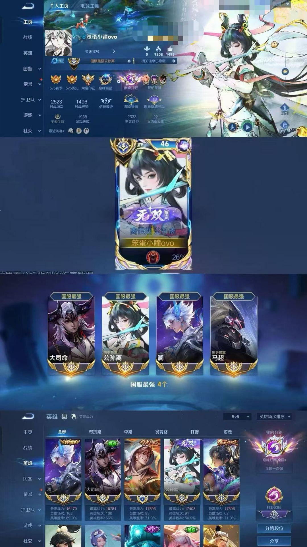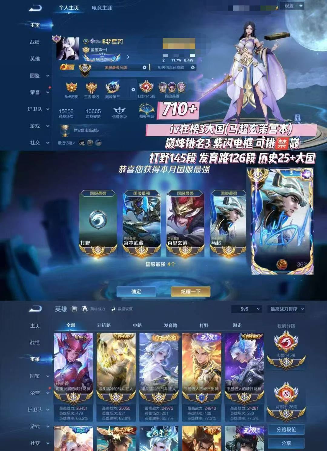 上号➕tuosu5三月在榜国服镜澜裴擒虎⚡️巅峰前十国服猴子香香阿离马可⚡️老虎马超木兰138段