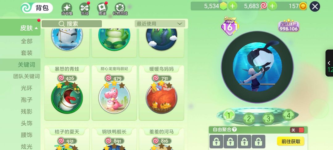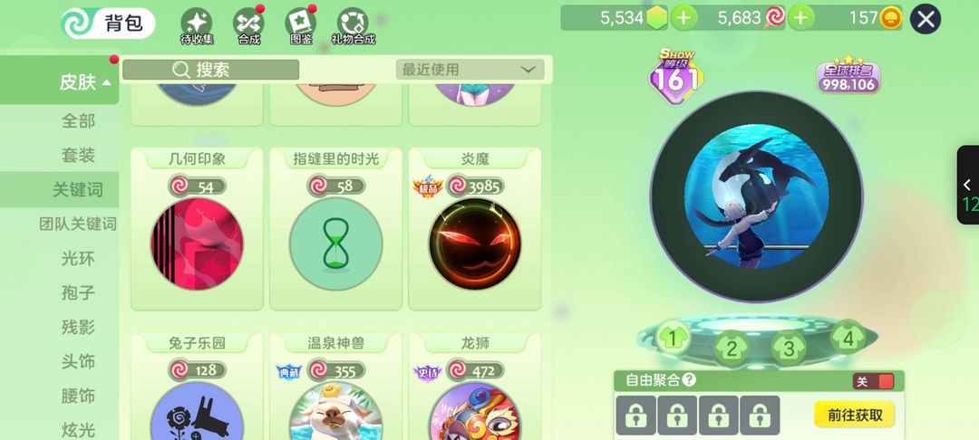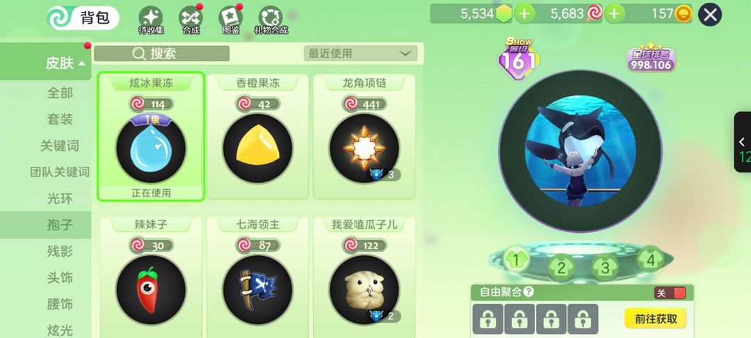 装备描述:水族馆奇遇,水滴果冻,炎魔,凤求凰,星罗万象严禁开挂作弊行为