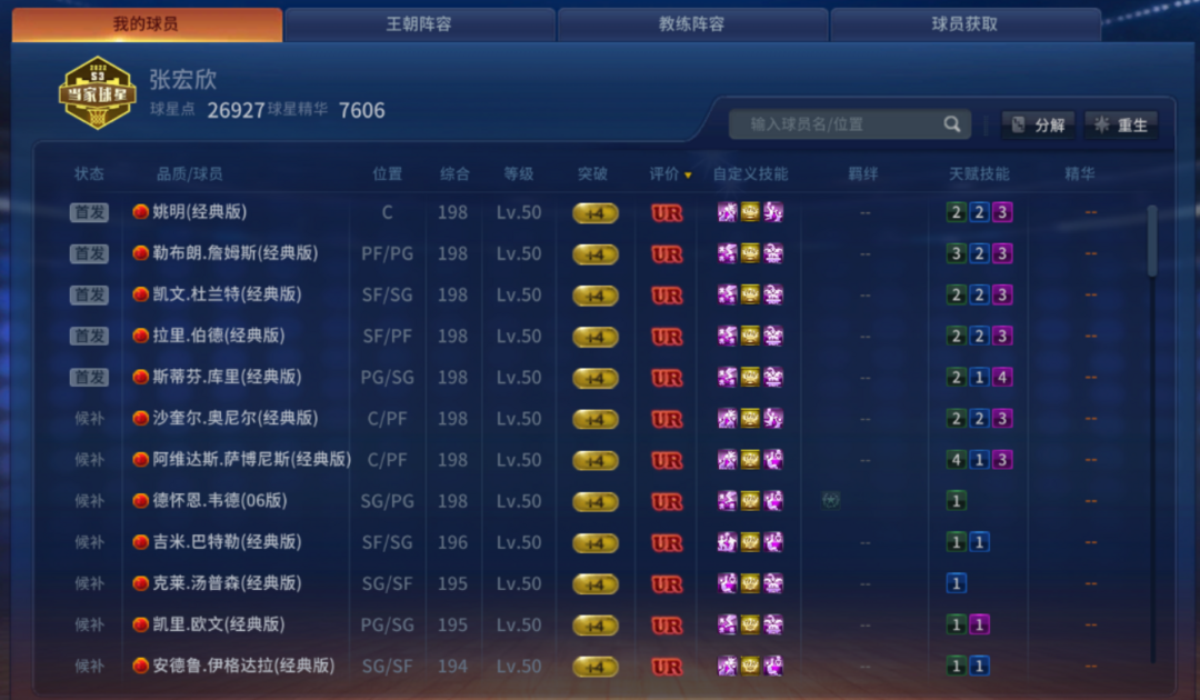 顶级阵容:UR库里UR姚明UR詹姆斯UR杜兰特UR伯德UR老萨UR奥尼尔SS科比SS乔丹+实用兑换区