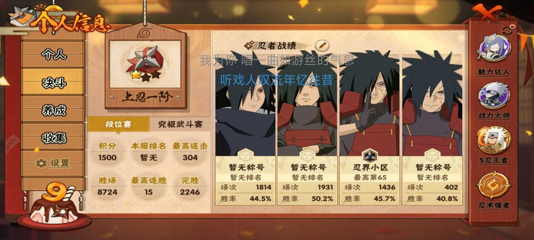 装备描述:温馨提示:此账号为快速..上号模式登录,不需要输入账号密码,租用后一键登录即可,如果出现登录异常等无法登录情况, 只需要先打开火影忍者到登录界面,然后在用租号玩一键登录即可。新版本bug:上号时上单租客若还在线会显示在别处登录,重新上游戏即可,不是有人挤号★★★ 安全提示:恶意撤单或者恶意投诉差评大将永久拉黑处理,请文明游戏,祝您游戏愉快,喜欢的点击收藏!喜欢本账号请点 ☆收藏☆ 方便下次租用,谢谢光临惠顾!