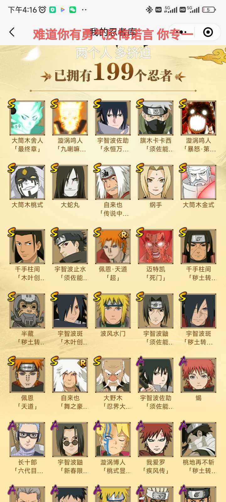 23s 38a 199忍 天道超 大筒木舍人 金式 须佐止水 秽土柱间 豪杰自来也 六尾鸣人