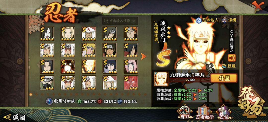 装备描述:四星【秽土柱间斑爷】全【52S】!战榜号!最低价冲销!【典藏带土♥守护奥义】★【168奥义木叶丸】!秽土二代★典藏柱间♥典藏鼬♥新春水门★泳楠★七夕限定★女团井野漂泊武士白……