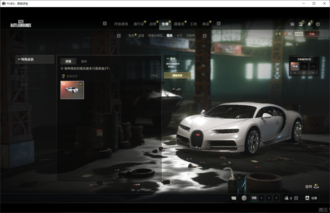 装备描述:布加迪威龙跑车✨绷带AK白运动萨芬裤白熊套唐三藏SLR✨沙悟净AUG孙悟空AKM镀金AWM碎瓜者平底锅