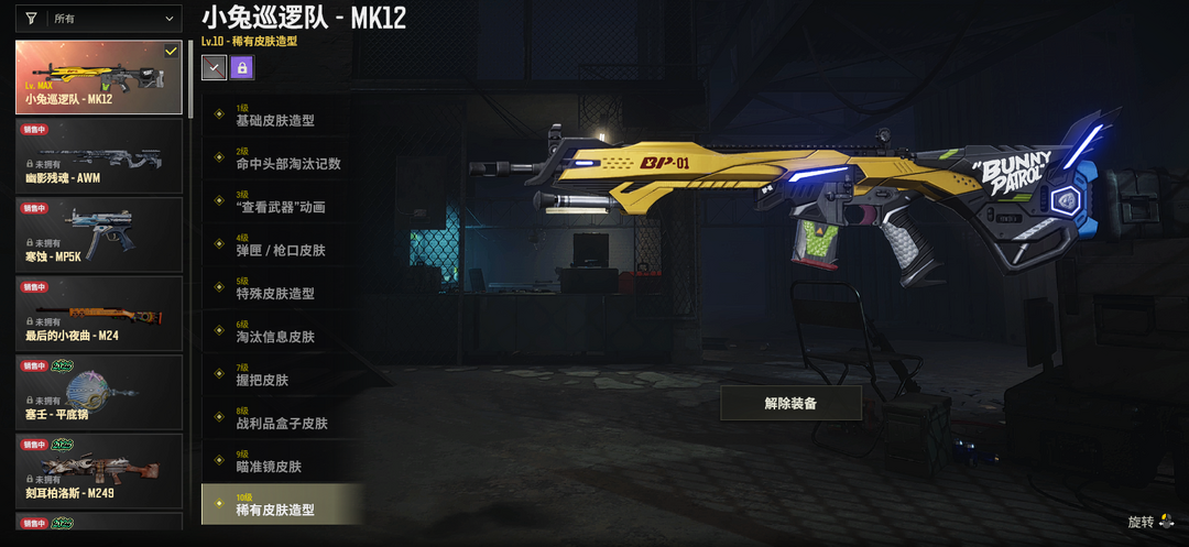 二级密码123456✅1000皮可排位-满级⑩级小兔巡逻队MK12 ✅暗影缠身AKM✅皇冠宝石m76