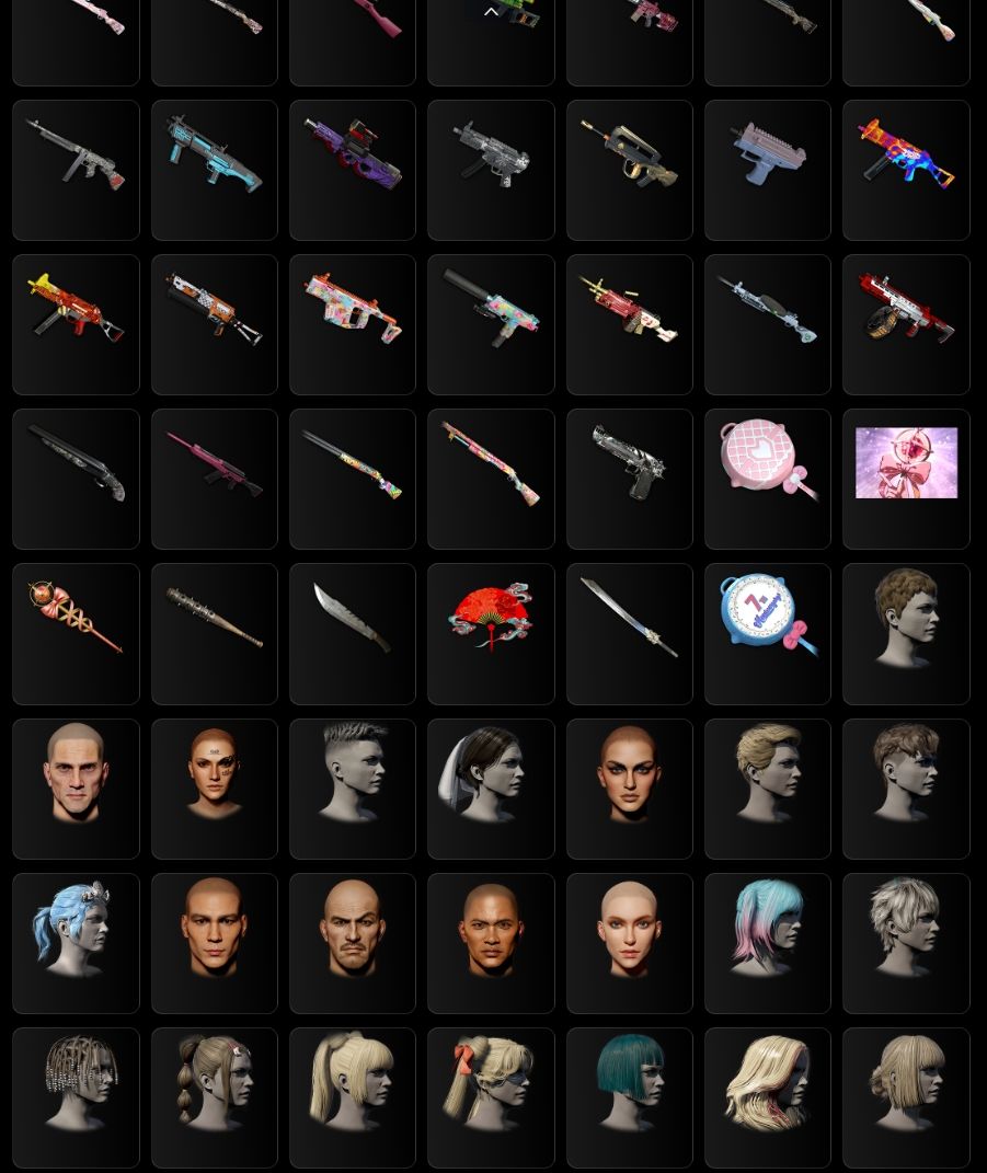装备描述:布加迪白红双色/兰博基尼/杜卡迪/满级猪八戒M416/异色无重力MP5K/权志龙AUG/孙悟空M24/妖魔之触ACE/爆裂AUG/双女团套装/魔力甜心全套/彩色烟雾弹/黑鬼/发光套/绷带AKM/西游记套装/大金牙/青海摇