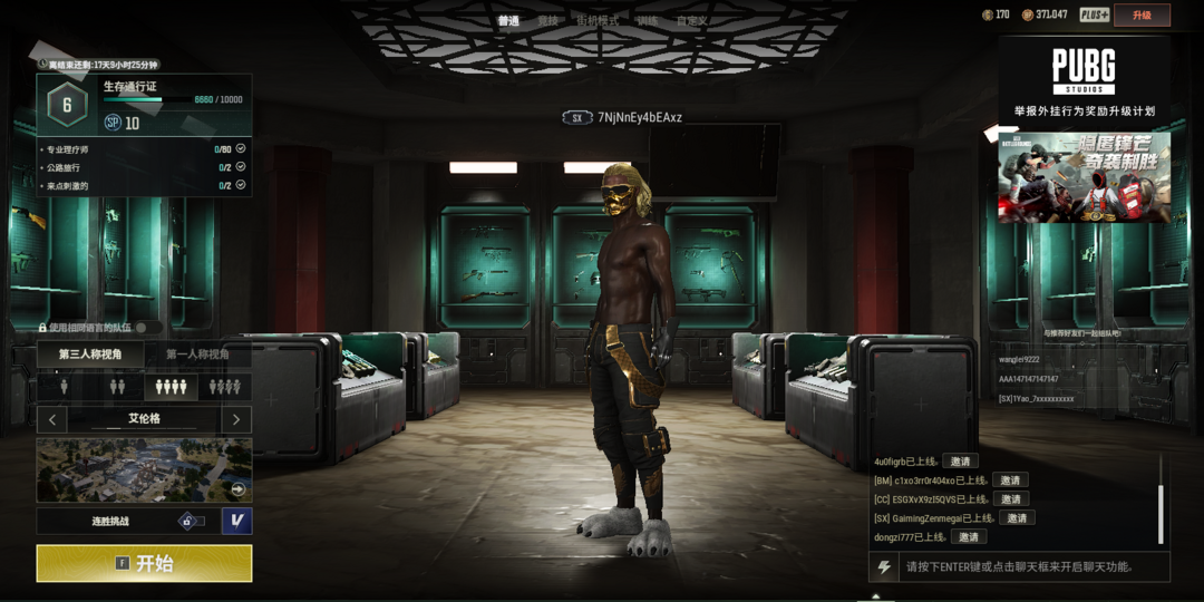 装备描述:悲喜套/拉风龙套【六成长武器-弥诺陶洛斯AUG-无信号M416-午夜惊魂98K-粉梦德拉贡-彩虹M24-无重力MP5K】老黑/大金牙/白熊套/维娜托套装/圣诞之子套/魔力甜心紫套装/发光圣诞套装/无重力M249/熔岩SKS/银河AKM/鲨鱼睡衣/