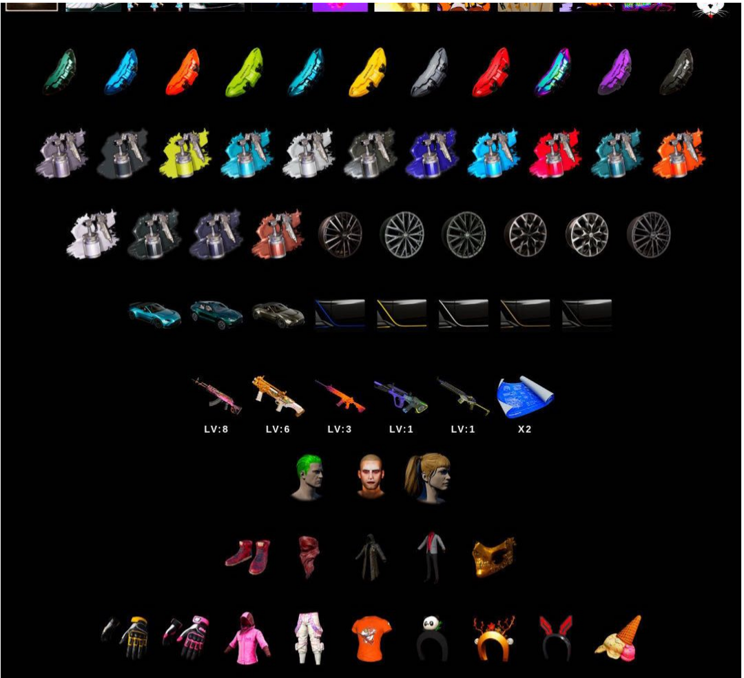 装备描述:二级密码522843豪华马丁+SUV十级火麒麟满级三级南瓜M4霓虹AUG沙悟净迷你烈日1897绿头