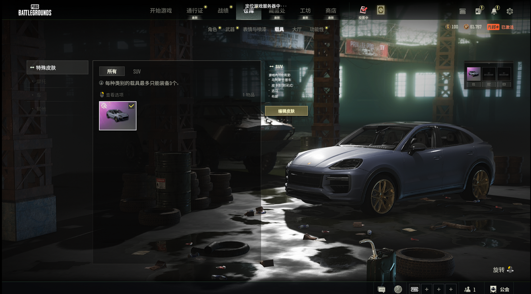 装备描述:二级密码092897保时捷卡宴亚特兰蒂斯DBS铃儿响叮当98K鲨鱼M16黄金AWM黄金GROZA