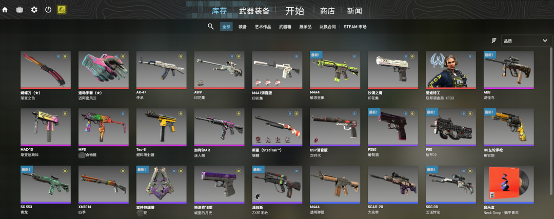 可新手完美/崭新渐变蝴蝶刀/迈阿密手套/破浪狂飙M4/传承AK/印花集大狙/印花集A1/主站全