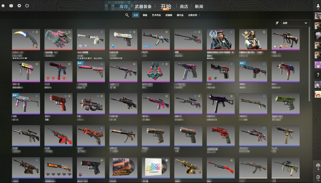 完美A+(2278)❤迈阿密手套⭐顶级渐变爪子刀⭐印花集全套⭐火神AK⭐野兽AWP⭐反冲M4⭐看