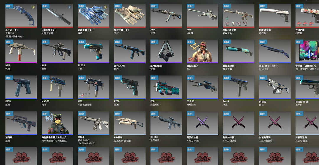 5e⭐双刀⭐爪子刀M9⭐双手套⭐双栖王蛇手套⭐火神AK⭐印花集AWP⭐双探员满皮肤