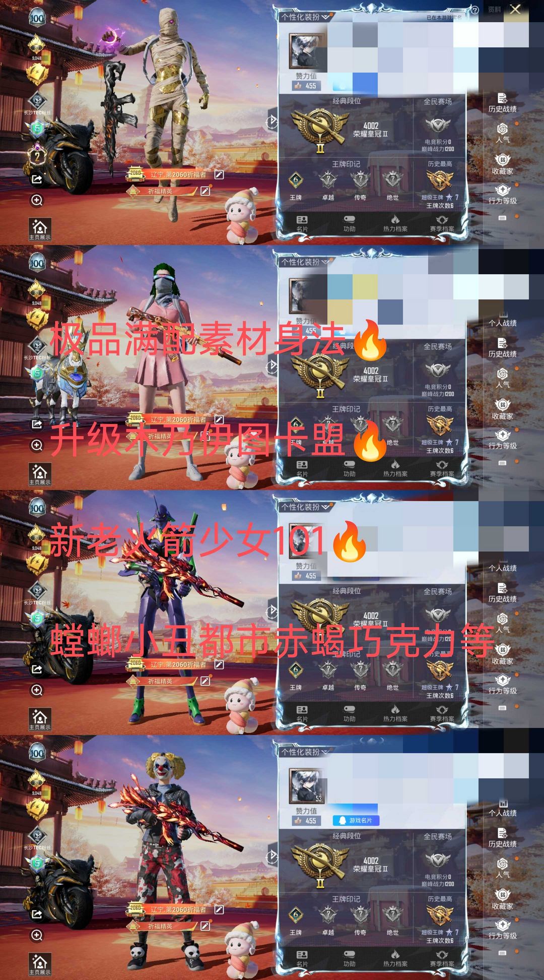 极品满配素材❤️升级木乃伊图卡盟❤️老101螳螂小丑❤️巧克力三姐妹放客都市赤蝎小丑女火箭少女