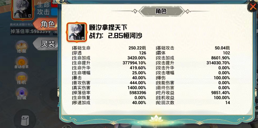 非速玩开局认证看图吃丹修仙号✨2.85恒河沙✨能刷七阶圣墟丹✨倍率598万✨14轮回
