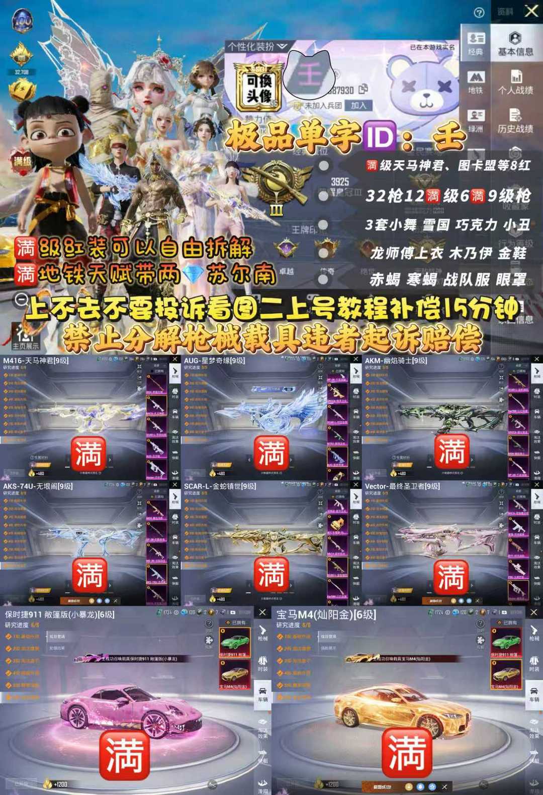 单字ID壬/看图上号教程/小舞全素材6把9级枪2满级车/满天马神君图卡盟满级星梦缘74U无垠阁保时捷