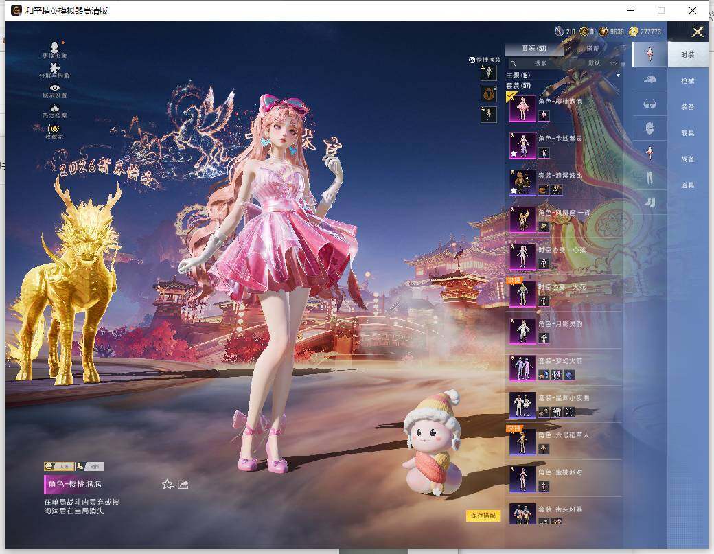 装备描述:速玩号!7粉装-5特效枪-5载具-10粉色飞行器-5王牌印记-57套装-102枪皮【热门品类】:粉装-梦幻火箭,套装-浪漫波比,角色-六号稻草人【粉色套装】:粉装-梦幻火箭,角色-金域紫灵,角色-月影灵韵,角色-樱桃泡泡,角色-凤凰座 一辉【粉色枪皮等级】:SCAR-L-金蛇镇世(三级),AUG-暖羊咩咩(五级),P90-沙丘之主(三级),Kar98K-巳巳如意(五级),M24-镜域双华(三级)【粉色载具】:宝马X6 M(曼岛绿),星河领航(磐石银),时空跃影(星辉银),幽焰风驰摩托车,护世瑞兽【粉色枪皮】:SCAR-L-金蛇镇世,AUG-暖羊咩咩,P90-沙丘之主,Kar98K-巳巳如意,M24-镜域双华【粉色飞行器】:酣梦熊熊飞行器,沙丘之主天马,镜域双华-灵镜之阶,龙翔九天飞行器,魔法神域飞行器,BEARBRICK飞行器,凤舞九天飞行器,万象金身飞行器